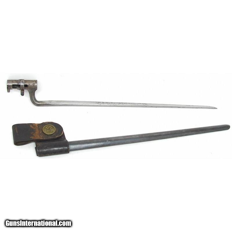 U.S. 1867 Peabody bayonet as used by various militia groups with a Trapdoor Sprigfield scabbard. Good condition.