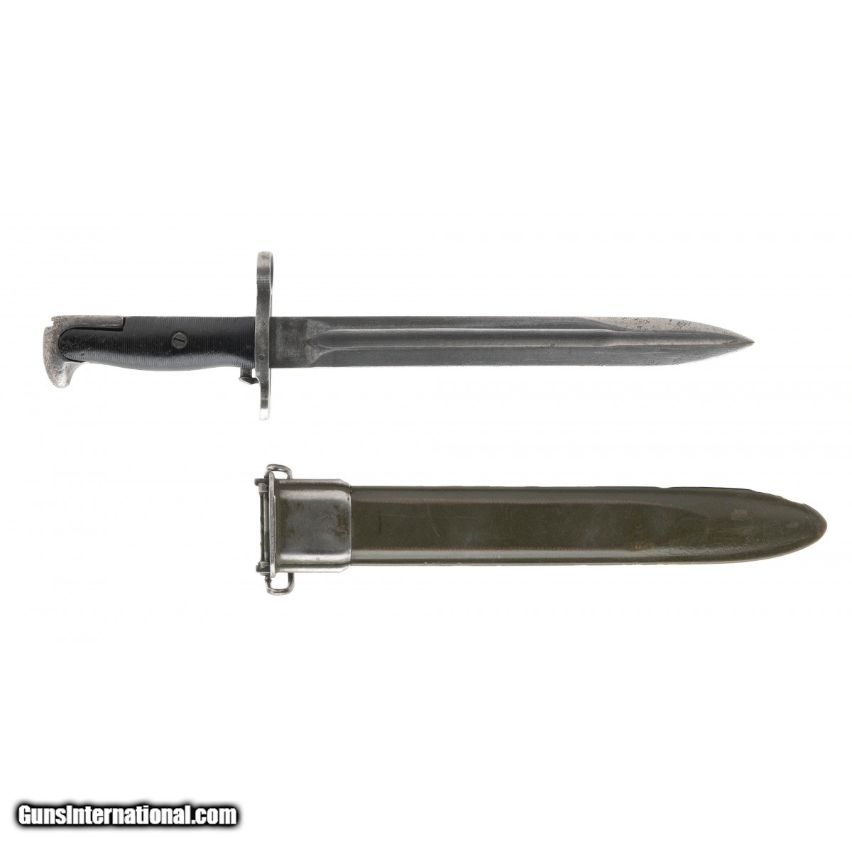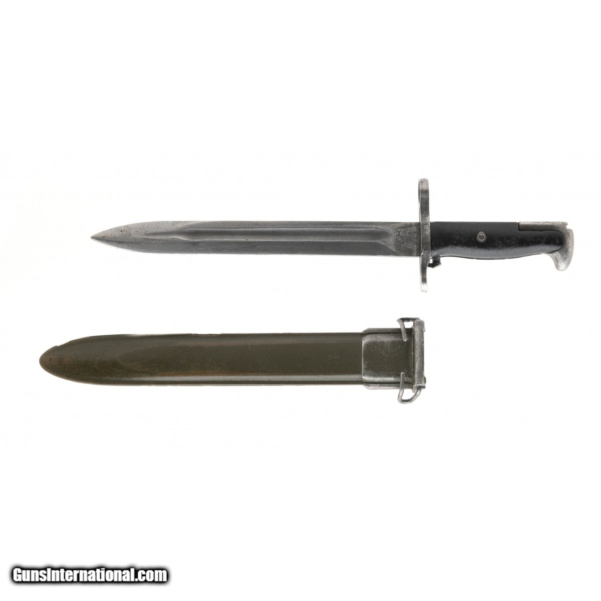 US 10"" cut down M1 Garand Bayonet in good condition. The finish is worn off of this 1943 dated blade made by Union Fork & Hoe.