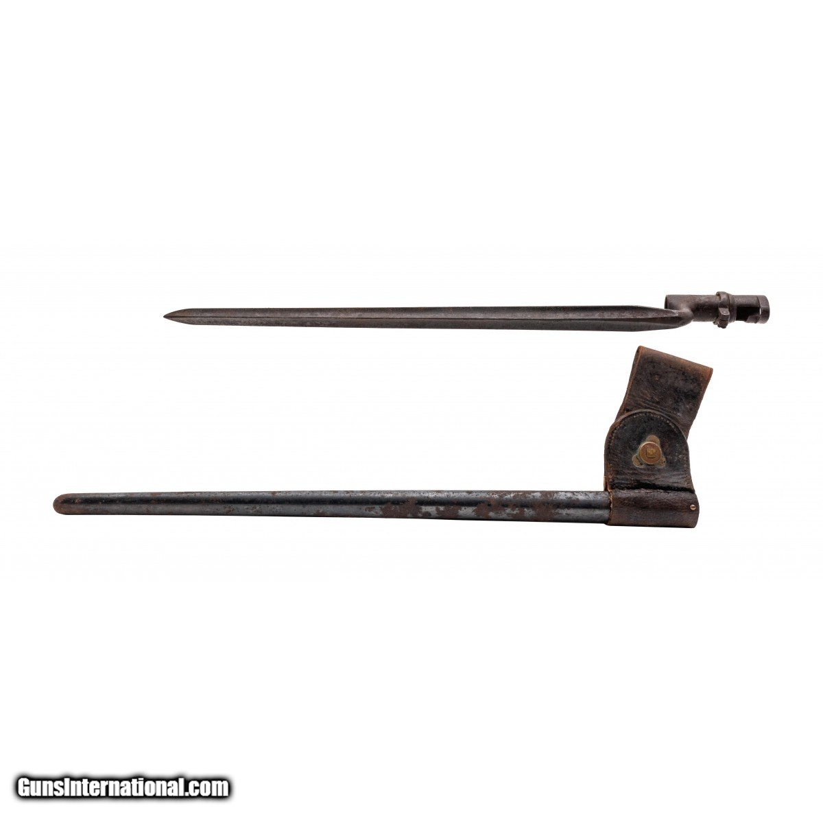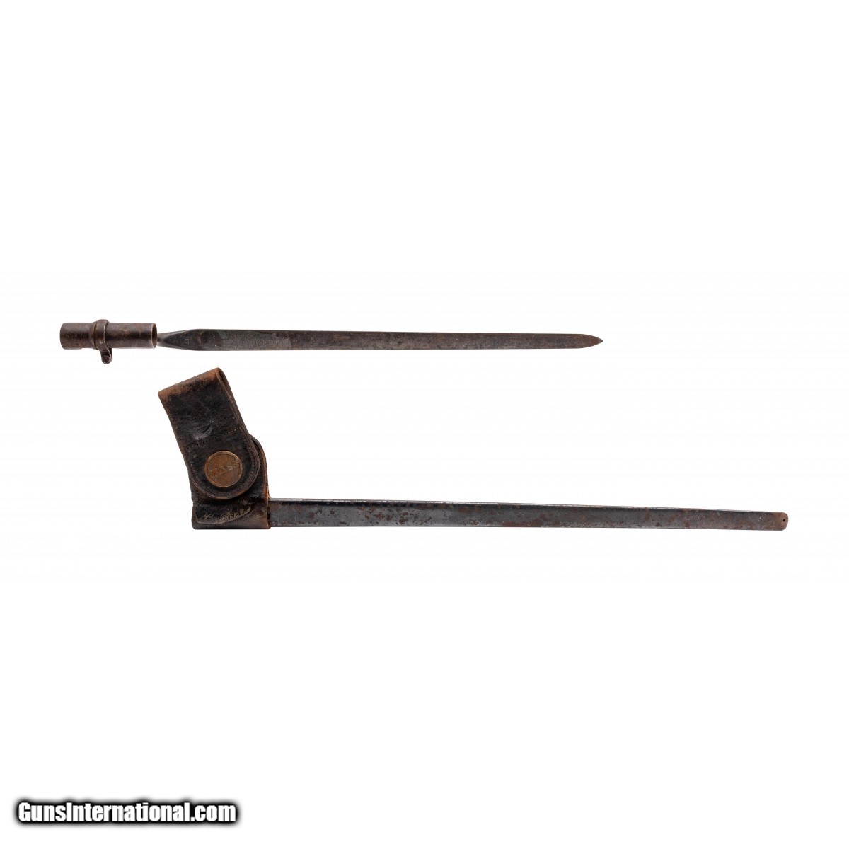 Description: " US marked 1873 Springfield Socket Bayonet With Scabbard. Both have surface rust. Scabbard Hanger Marked MASS. SOLD |