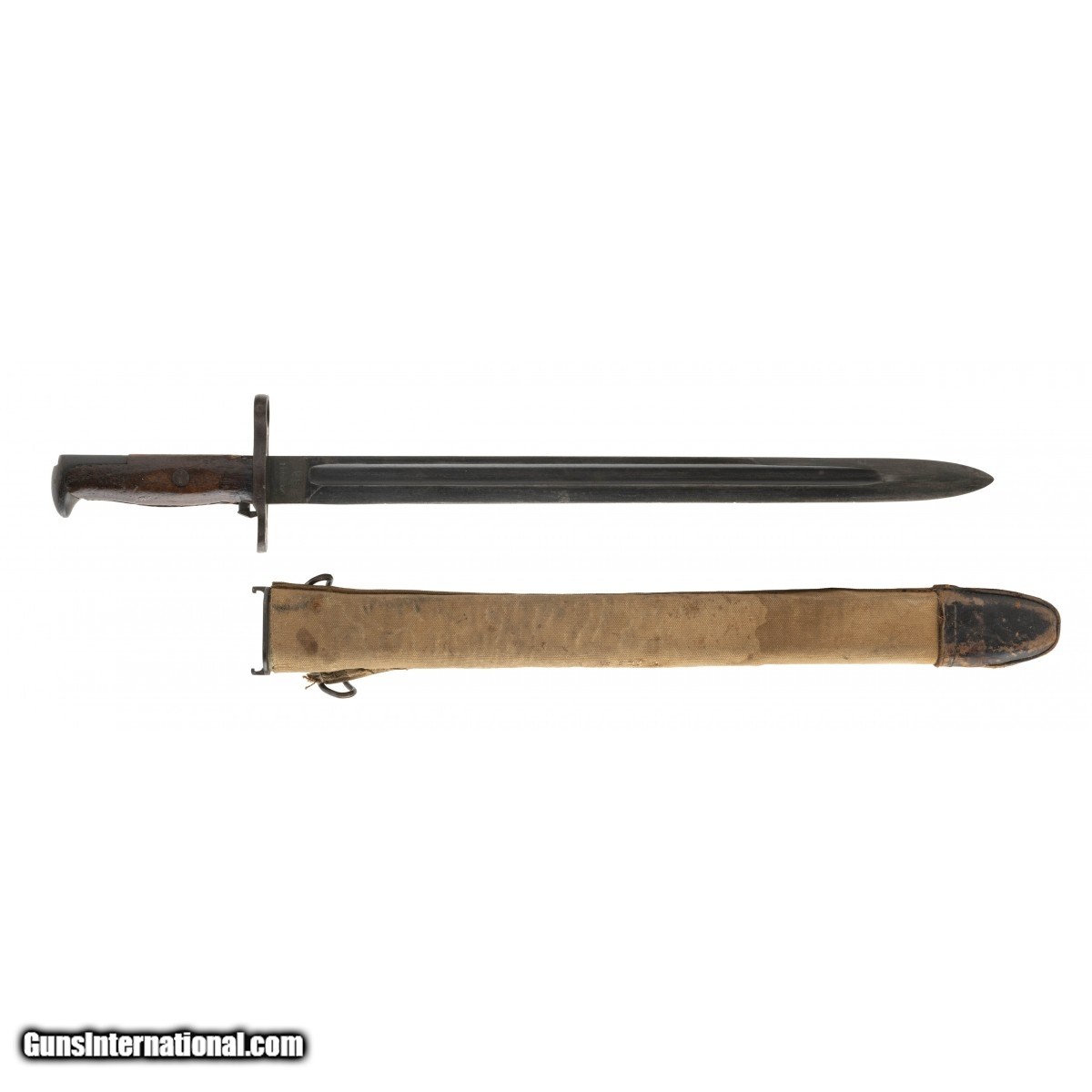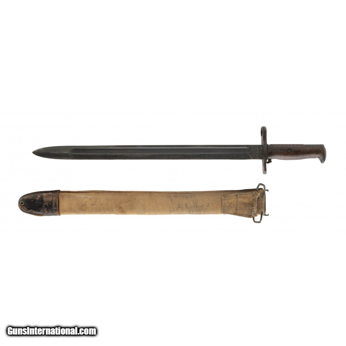 Description: " US 1905 Bayonet in very good condition.Canvas covered scabbard is scarce. SOLD |