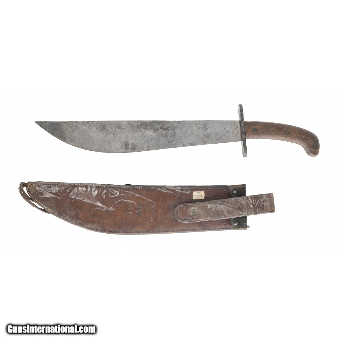 US 1909 Bolo knife\machete and scabbard in very good condition.Bright blade is marked Plumb Phila.1917.Scabbardis stamped Rock Island Arsenal 1911 H.E.K.