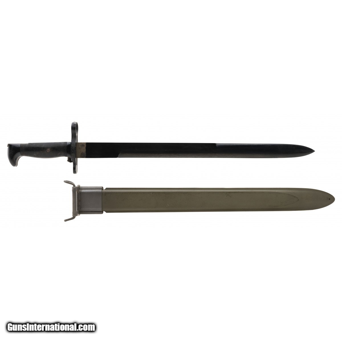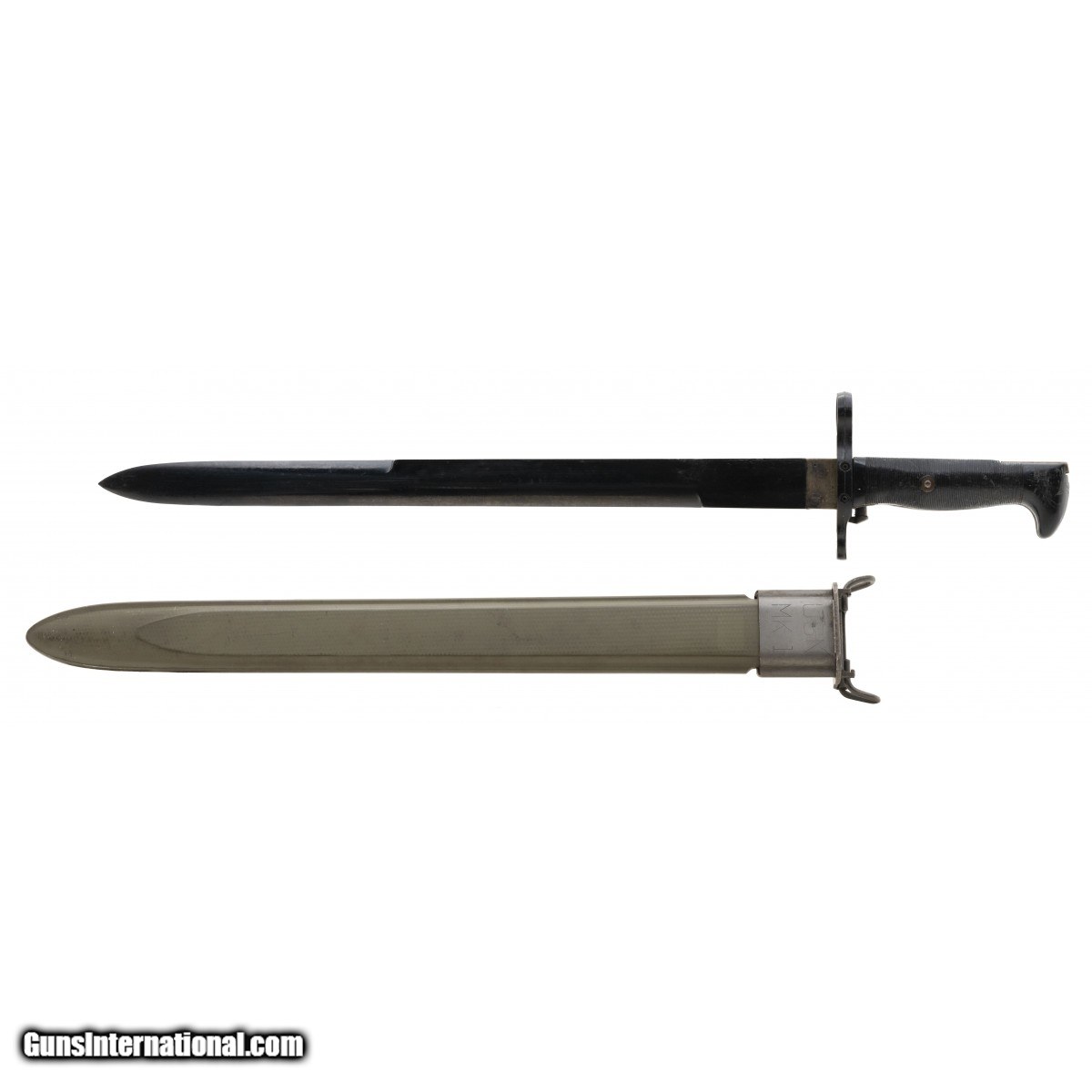 USN marked Garand Training Bayonet in very good condition with intact crossguard.Scabbard i excellent condition with USN MKI marking.