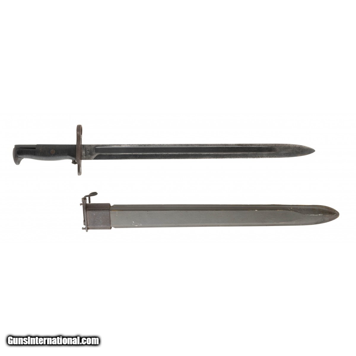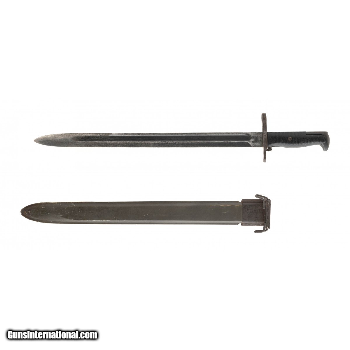 Description: " US WWII 16"" Garand Bayonet with scabbard in Good condition.Blade shows in out wear and marked S.A. 1906.Crossguard and scabbard throat show rust. SOLD |