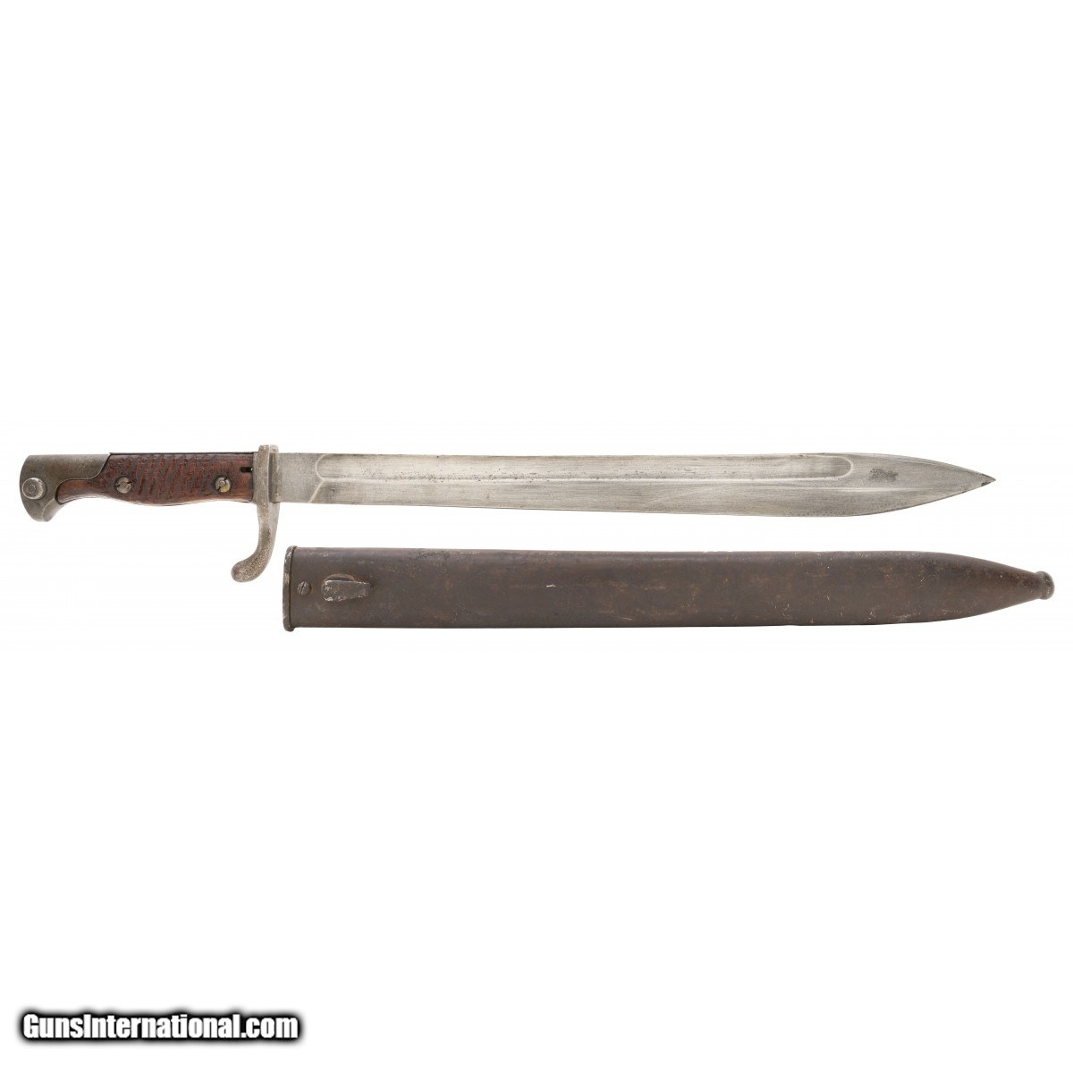 Description: " German Butcher Blade Bayonet in Good Condition. Dated 1917 Bright Blade By Mauser. Scabbard Surface rust and has small dent. SOLD |
