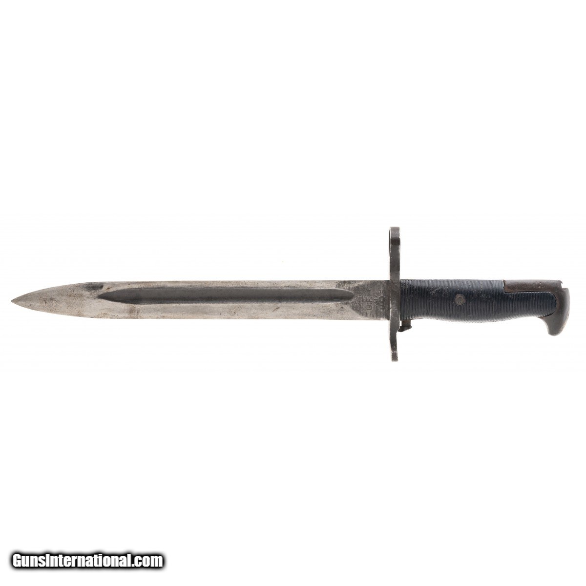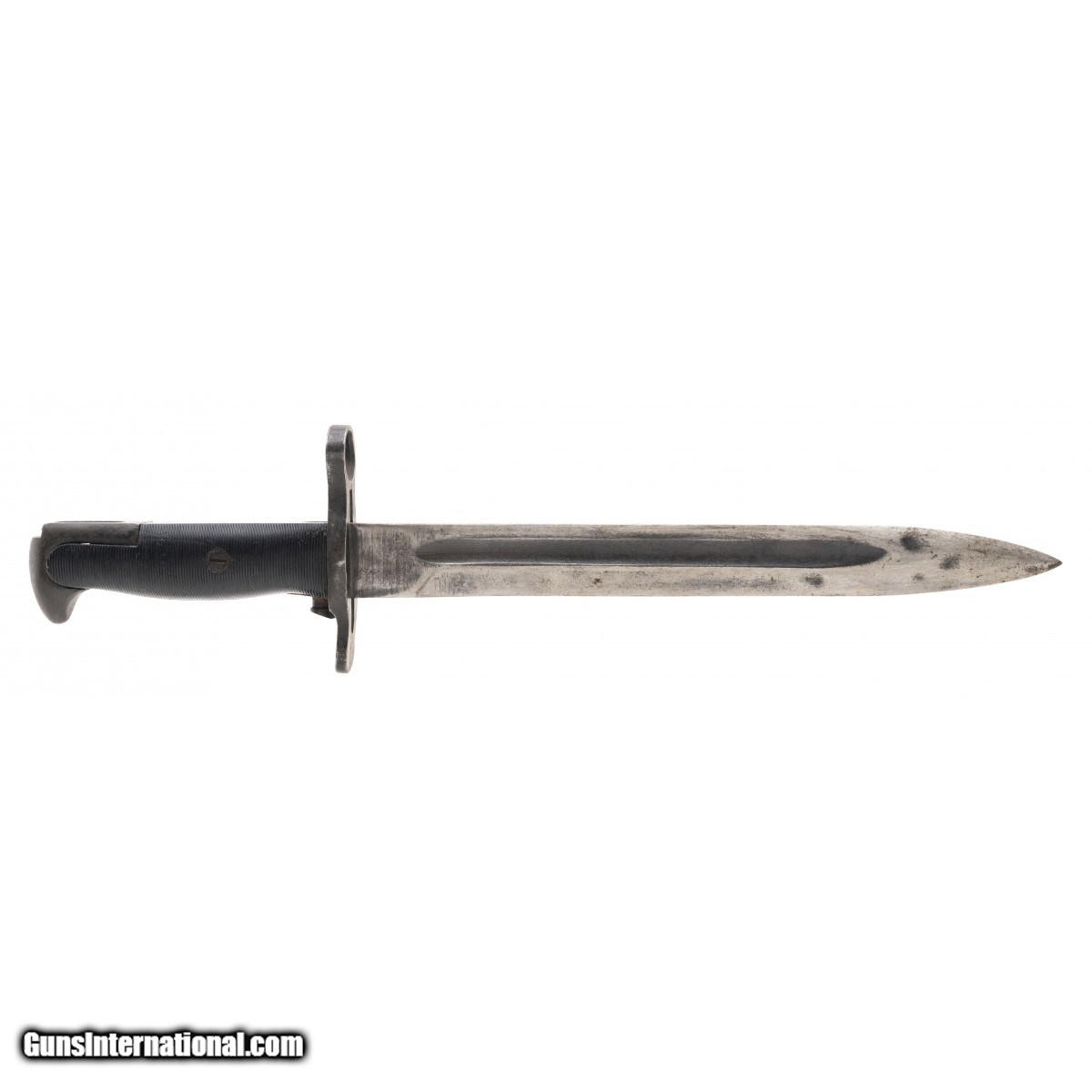 Description: " Cut down M1 Garand bayonet made by U.F.H. with a 9.75"" blade. Bayonet has a dull grey patina with modeled oxidation visible.Sprine, bolster, and handle are in good condition, handling marks are present. SOLD |