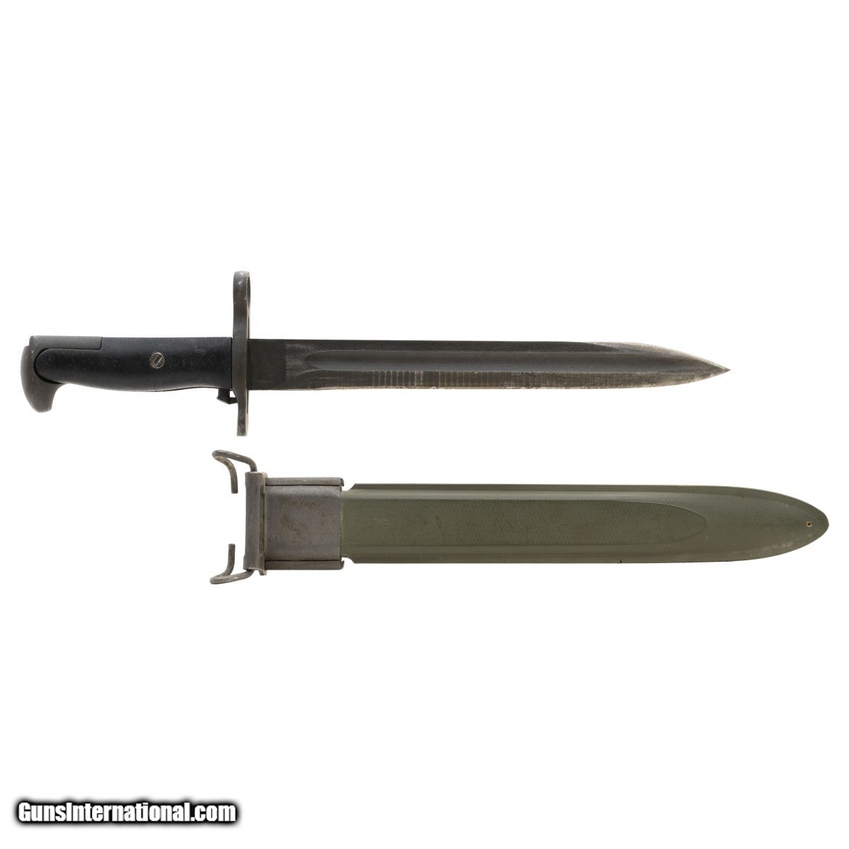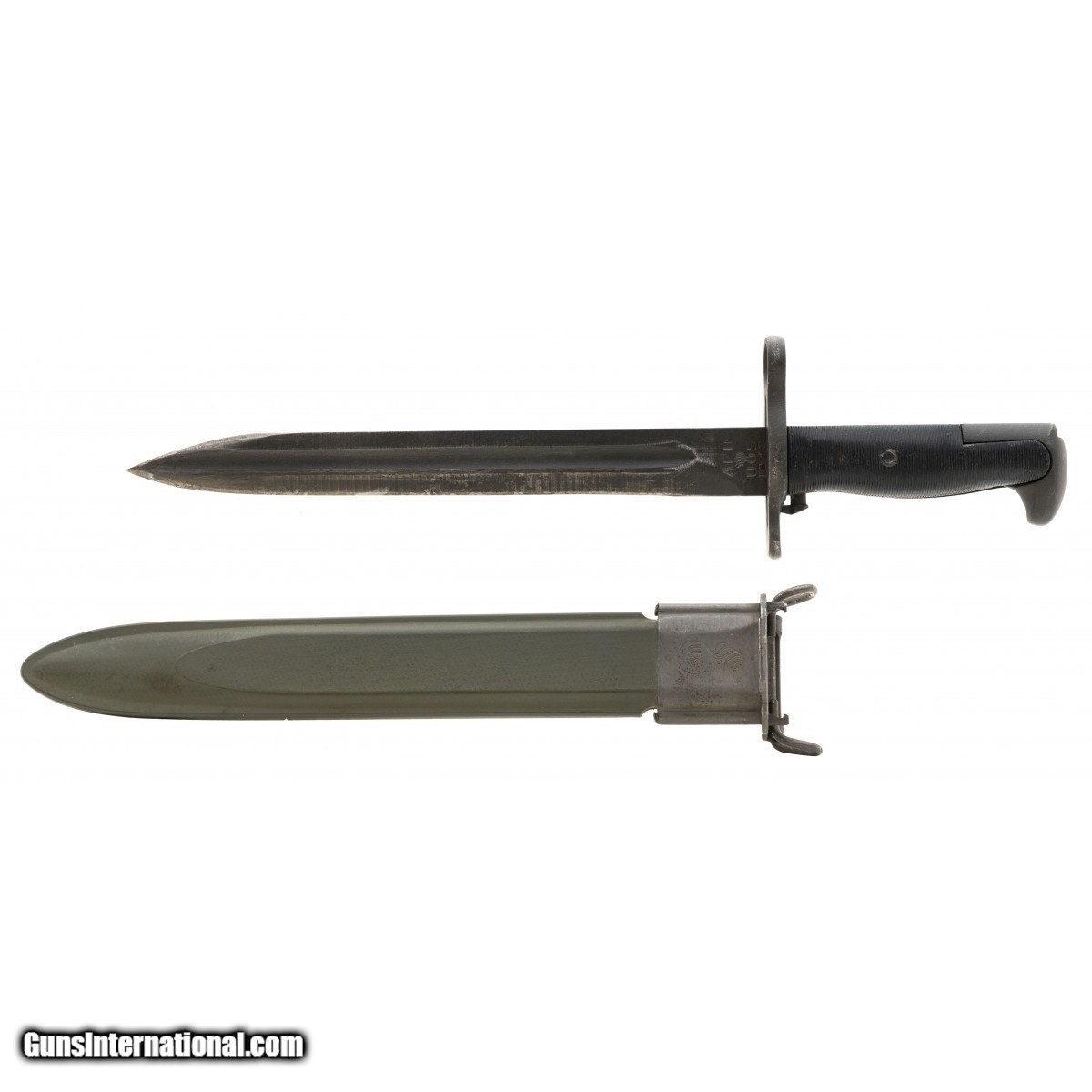 WWII US Garand Bayonet with scabbard in excellent condition.Blade dated 1943.Made by American Fork and Hoe.Cut Down to 10 inches from 16.