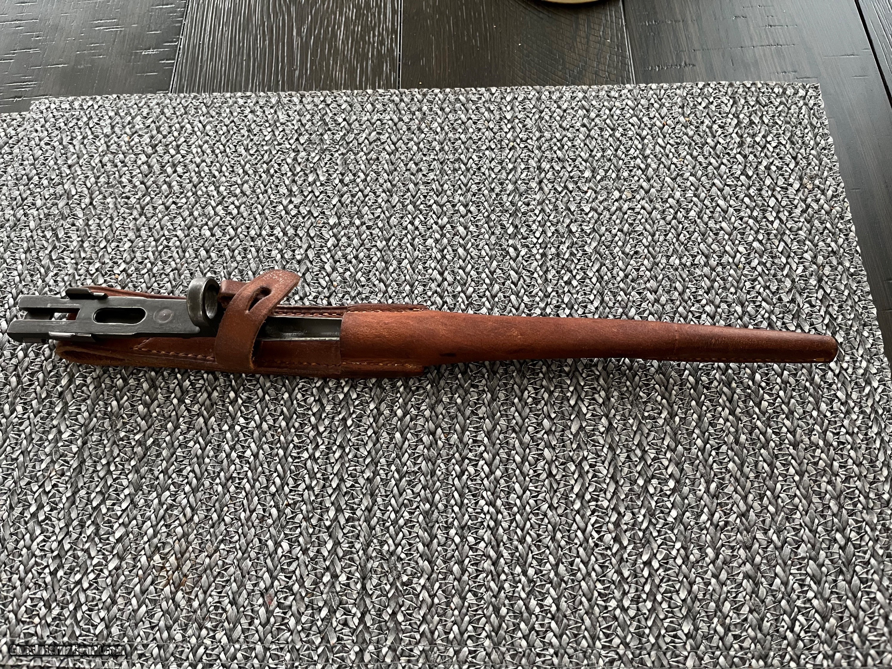Description: Beautiful 1941 Johnson Rifle Bayonet with the Scabbard. Original finish & untouched Scabbard. SOLD |