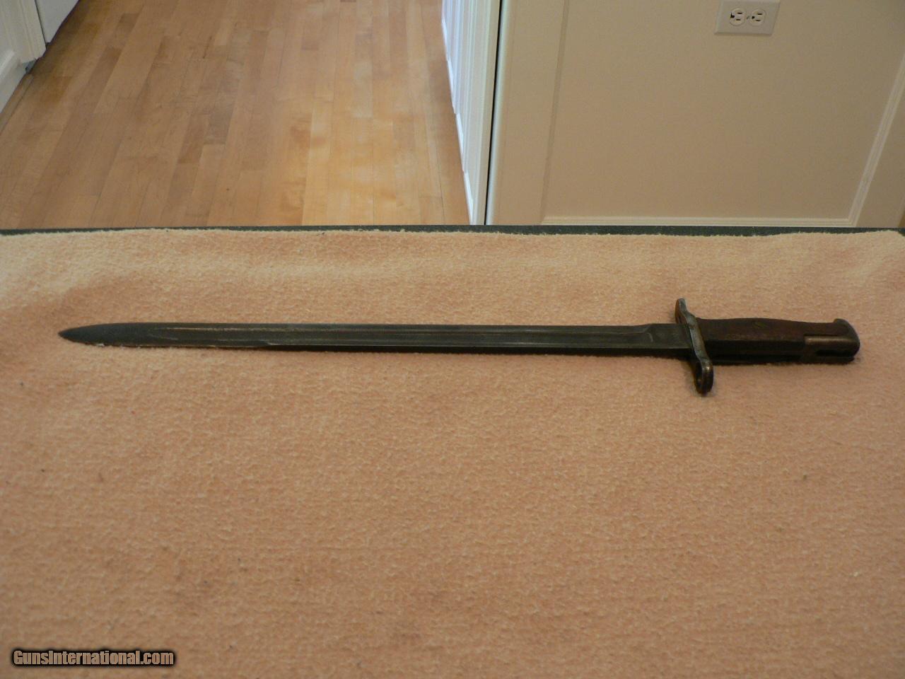 Description: Twoi model 1905 Us Springfield bayonets. #1 rare blued blade-arsenal modified for M1 Garand. 2nd production. 1918. #2 Model 1905-1st. production arsenal modified for M1 Garand. Both good condition for age and combat.$175 each or $325 for the pair. Have many others. Please see other ads by same seller. Collector W SOLD |