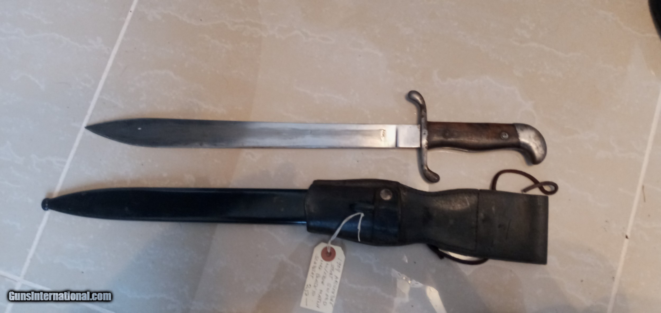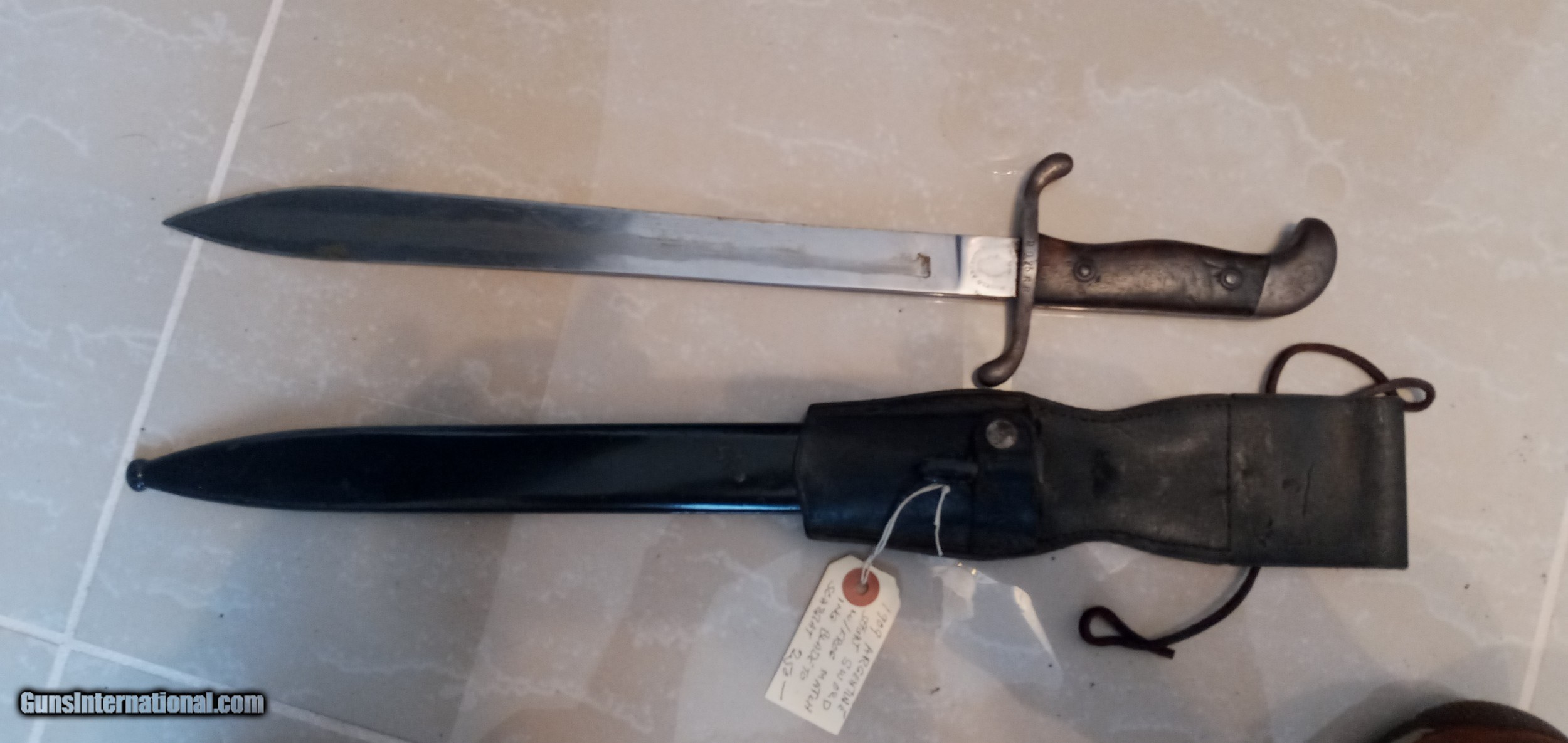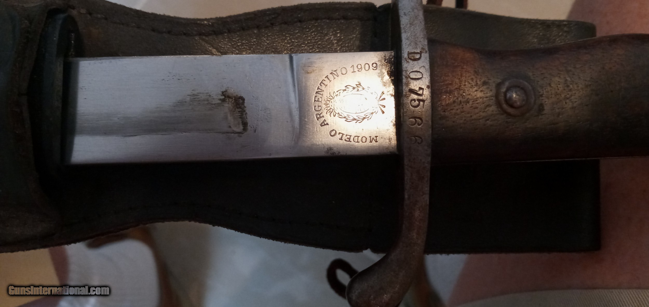 Description: 1909 Argentine Short Sword w/ Frog. Matching blade to Scabbard. Excellent Contition. SOLD |