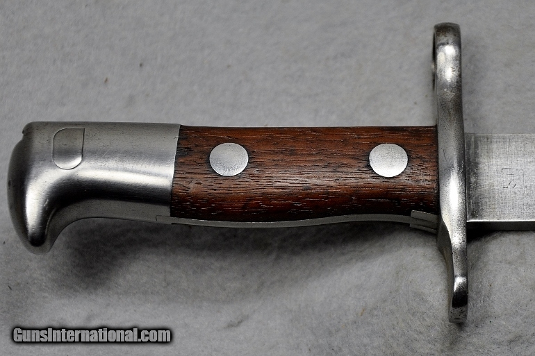 Description: Bayonet, Model 1896, for Krag rifle, bayonet and scabbard have been cleaned and are overall in Very Good conditon, Retail value 200, Sale price $149.00 Our firearms and accessories are best viewed on a desktop or laptop computer with at least a 15" high rez screen. Viewing on an I-phone, I-pad, or tablet just can't show the detail that our professional photographer exhibits in his photos. We have been in the firearms business for over 55 years (since 1960) under the same ownership. We are a Platinum dealer on GI. We are receiving up to 50 e-mails daily. All buyers are taken on a strict first come-first served basis depending on the date and time we receive their e-mail. We strive to describe all of our sale items accurately and fully and include professional quality photos of each item. We do our best to point out negatives (if any) regarding a sale item. Although we offer a 3-day, no questions asked, return policy it has rarely been used the entire time we have been in business. The first potential buyer who states that he definitely wants an item gets it. Those having questions who do not commit to purchase in their first inquiry will have their questions answered but may lose the sale if another buyer e-mails after they do and commits to purchase before we can get back to the first inquirer to answer their questions. This happens almost daily and disappoints a lot of people. If you see something you want- commit to buy it. You will not be disappointed. We cater to first time GI buyers. You can purchase from us with total confidence. We will guide you through the purchasing process if need be. WANT TO VISIT A GUN SHOW ANYTIME RIGHT ON YOUR COMPUTER? We add guns and gun related items to GI virtually every day. It’s as simple as 1, 2, 3 ........ 1) After going to the GunsInternational homepage click on the box "Advanced Search" at the top...... 2) Click on the box "Other Options"..... 3) Type “Maryland Arms Company” into the "Sellers Screenname" box and click "enter". Over 150 guns and related items we currently have listed on GI will come up with photos and complete descriptions that are available for purchase right now. We keep our ads current. This stuffs for sale immediately. No fooling around wasting time trying to beat out other people. No stupid fees. Who has the time and money for that? That’s the beauty of GI. Tell all your friends. USA SALES ONLY EXCEPT CA. Thank you. SOLD |