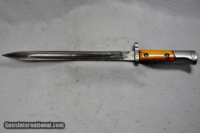 Description: Bayonet, Czech, Model CZ24, scabbard Retail value $175.00, Sale priced at $99.00 Our firearms and accessories are best viewed on a desktop or laptop computer with at least a 15" high rez screen. Viewing on an I-phone, I-pad, or tablet just can't show the detail that our professional photographer exhibits in his photos. We have been in the firearms business for over 55 years (since 1960) under the same ownership. We are a Platinum dealer on GI. We are receiving up to 50 e-mails daily. All buyers are taken on a strict first come-first served basis depending on the date and time we receive their e-mail. We strive to describe all of our sale items accurately and fully and include professional quality photos of each item. We do our best to point out negatives (if any) regarding a sale item. Although we offer a 3-day, no questions asked, return policy it has rarely been used the entire time we have been in business. The first potential buyer who states that he definitely wants an item gets it. Those having questions who do not commit to purchase in their first inquiry will have their questions answered but may lose the sale if another buyer e-mails after they do and commits to purchase before we can get back to the first inquirer to answer their questions. This happens almost daily and disappoints a lot of people. If you see something you want- commit to buy it. You will not be disappointed. We cater to first time GI buyers. You can purchase from us with total confidence. We will guide you through the purchasing process if need be. WANT TO VISIT A GUN SHOW ANYTIME RIGHT ON YOUR COMPUTER? We add guns and gun related items to GI virtually every day. The easiest way is to click on the box up in the top right hand side of this ad labelled "SEE ALL LISTINGS BY MARYLAND ARMS COMPANY". Or, if you are just getting onto the computer it’s as simple as 1, 2, 3 ........ 1) After going to the GunsInternational homepage click on the box "ADVANCED SEARCH" at the top...... 2) Then click on the box "OTHER OPTIONS"..... 3) Type "MARYLAND ARMS COMPANY" into the "SELLERS SCREENAME" box and click "ENTER". Over 150 guns and related items we currently have listed on GI will come up with photos and complete descriptions that are available for purchase right now. We keep our ads current. This stuffs for sale immediately. No fooling around wasting time trying to beat out other people. No stupid fees. Who has the time and money for that? That’s the beauty of GI. Tell all your friends. USA SALES ONLY. Thank you SOLD |