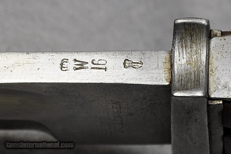 Description: Bayonet, Ernst Busch, Model 1898/05, for GEW 98, WW I, Imperial markings on pommel and blade, Mfg. 1916 in Solingen, Germany, blade sharpened and nicely cleaned, wood appears original, looks great, no scabbard, Retail value $200.00, Sale priced at $99.00 .Our firearms and accessories are best viewed on a desktop or laptop computer with at least a 15" high rez screen. Viewing on an I-phone, I-pad, or tablet just can't show the detail that our professional photographer exhibits in his photos. We have been in the firearms business for over 55 years (since 1960) under the same ownership. We are a Platinum dealer on GI. We are receiving up to 50 e-mails daily. All buyers are taken on a strict first come-first served basis depending on the date and time we receive their e-mail. We strive to describe all of our sale items accurately and fully and include professional quality photos of each item. We do our best to point out negatives (if any) regarding a sale item. Although we offer a 3-day, no questions asked, return policy it has rarely been used the entire time we have been in business. The first potential buyer who states that he definitely wants an item gets it. Those having questions who do not commit to purchase in their first inquiry will have their questions answered but may lose the sale if another buyer e-mails after they do and commits to purchase before we can get back to the first inquirer to answer their questions. This happens almost daily and disappoints a lot of people. If you see something you want- commit to buy it. You will not be disappointed. We cater to first time GI buyers. You can purchase from us with total confidence. We will guide you through the purchasing process if need be. WANT TO VISIT A GUN SHOW ANYTIME RIGHT ON YOUR COMPUTER? We add guns and gun related items to GI virtually every day. The easiest way is to click on the box up in the top right hand side of this ad labelled "SEE ALL LISTINGS BY MARYLAND ARMS COMPANY". Or, if you are just getting onto the computer it’s as simple as 1, 2, 3 ........ 1) After going to the GunsInternational homepage click on the box "ADVANCED SEARCH" at the top...... 2) Then click on the box "OTHER OPTIONS"..... 3) Type "MARYLAND ARMS COMPANY" into the "SELLERS SCREENAME" box and click "ENTER". Over 150 guns and related items we currently have listed on GI will come up with photos and complete descriptions that are available for purchase right now. We keep our ads current. This stuffs for sale immediately. No fooling around wasting time trying to beat out other people. No stupid fees. Who has the time and money for that? That’s the beauty of GI. Tell all your friends. USA SALES ONLY. Thank you SOLD |