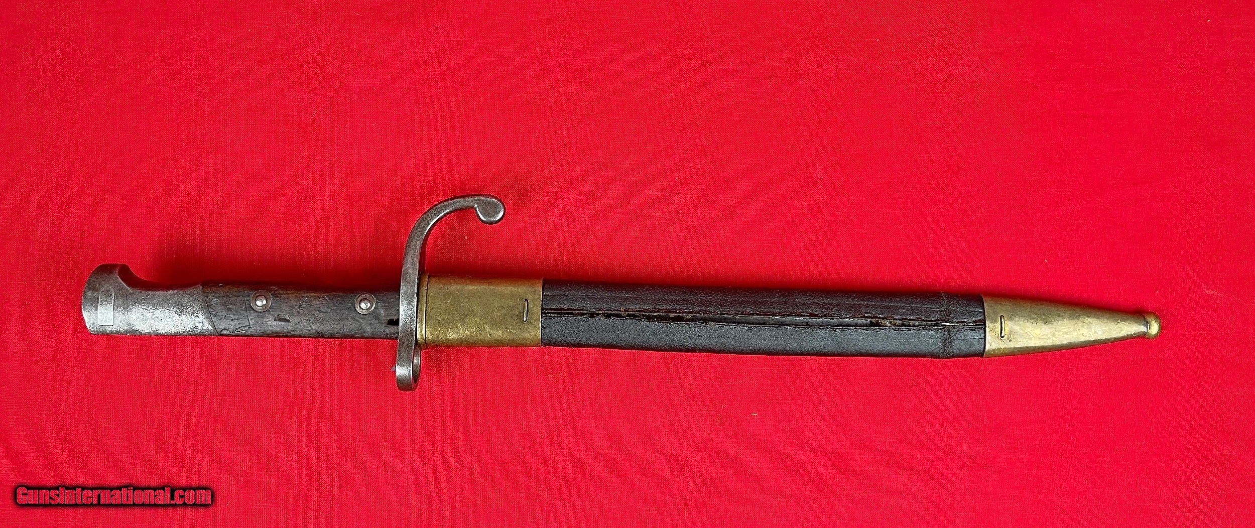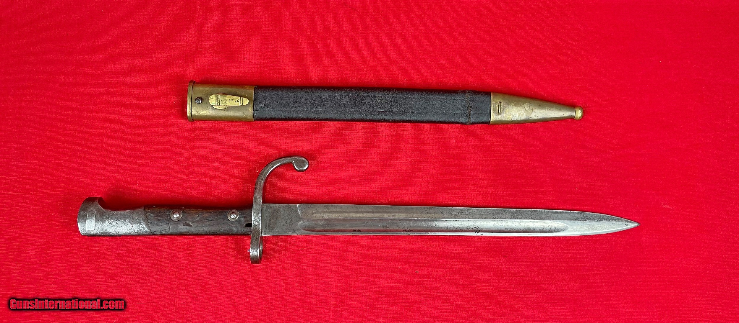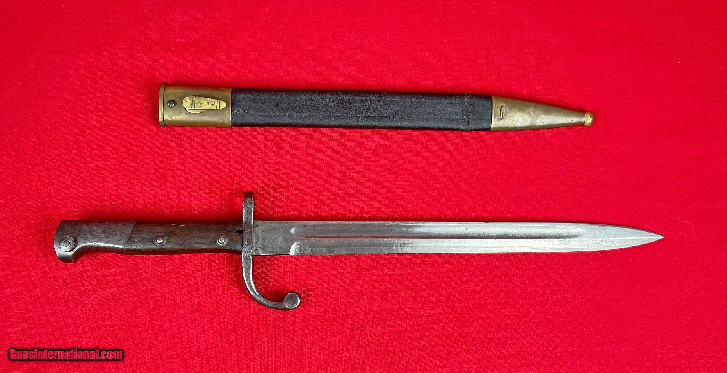 Description: Brazilian bayonet for Model 1908 Mauser Very good condition Includes scabbard in good condition with split along the seam Buyer pays shipping Call or text Paul at 601-397-8054 Please see all my items SOLD |