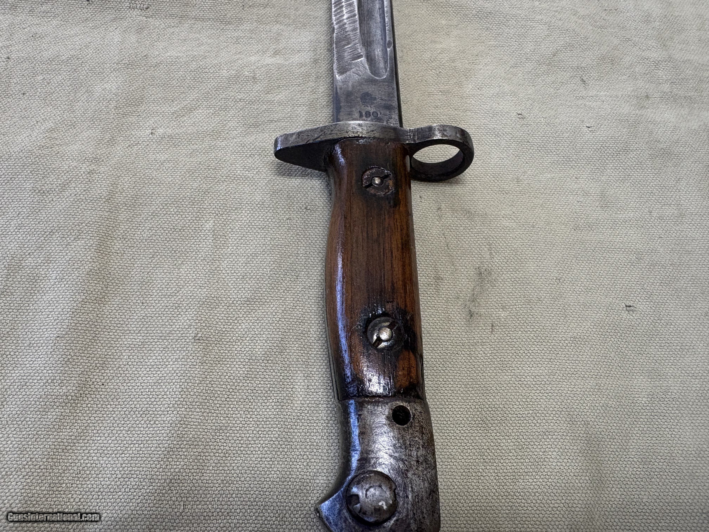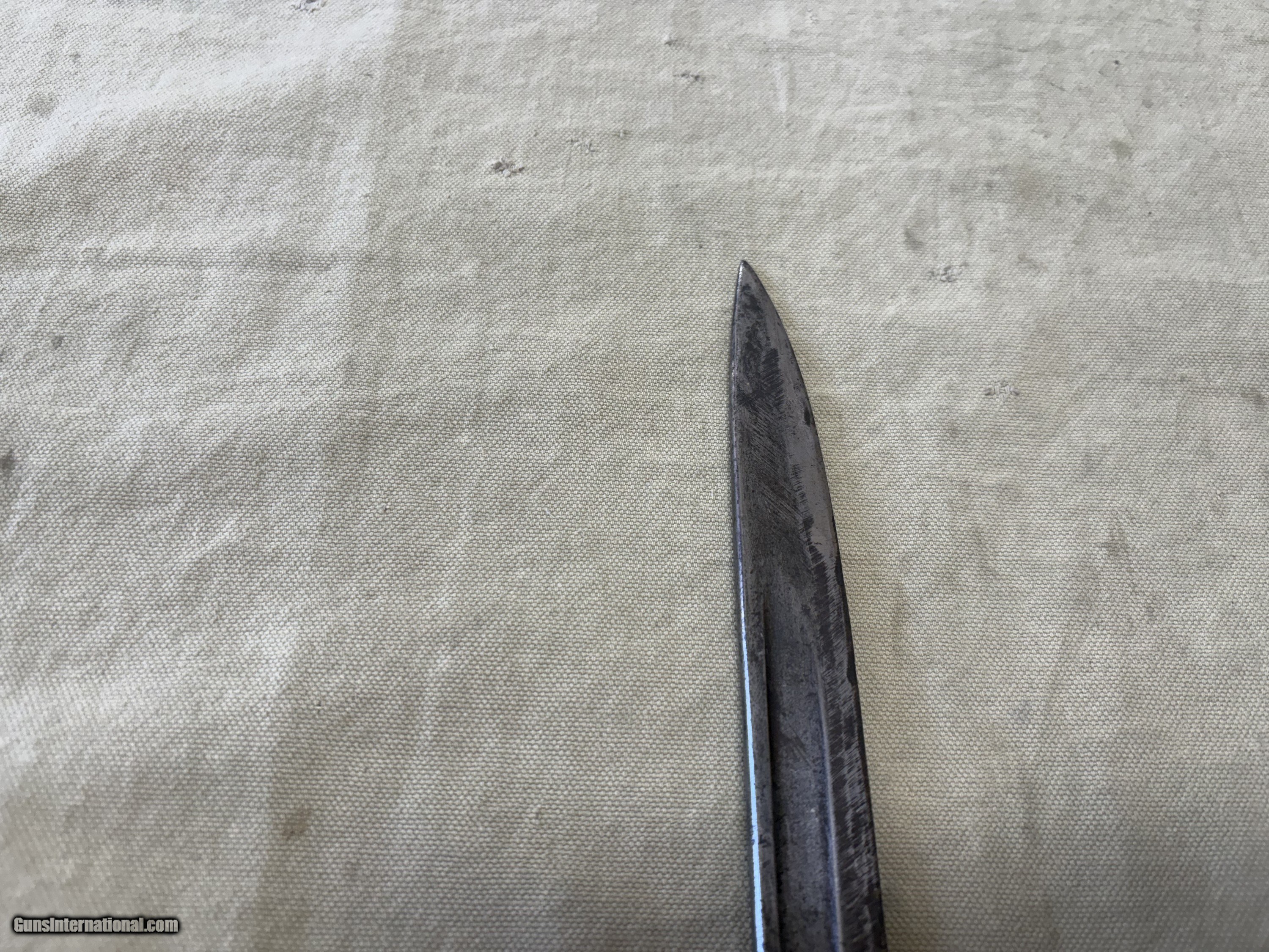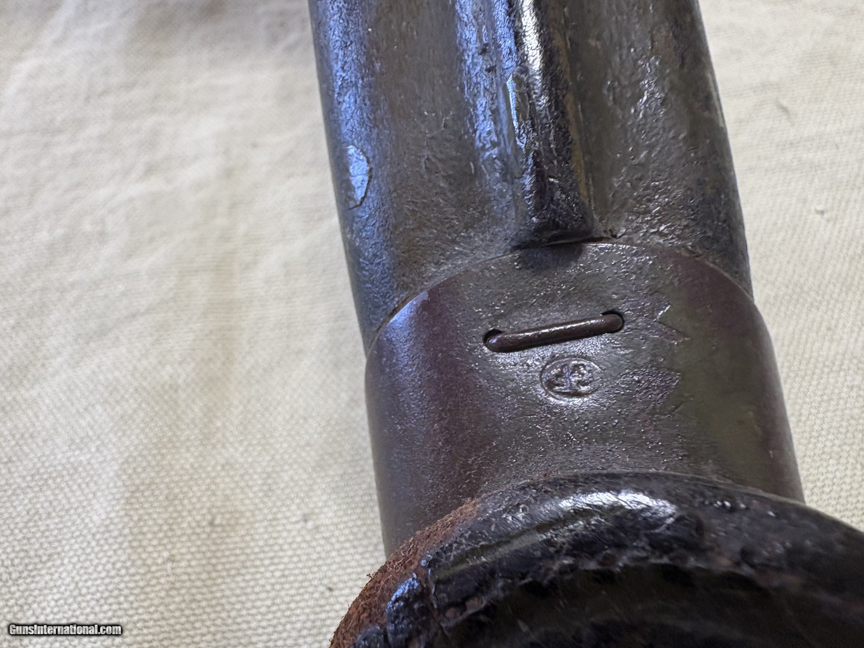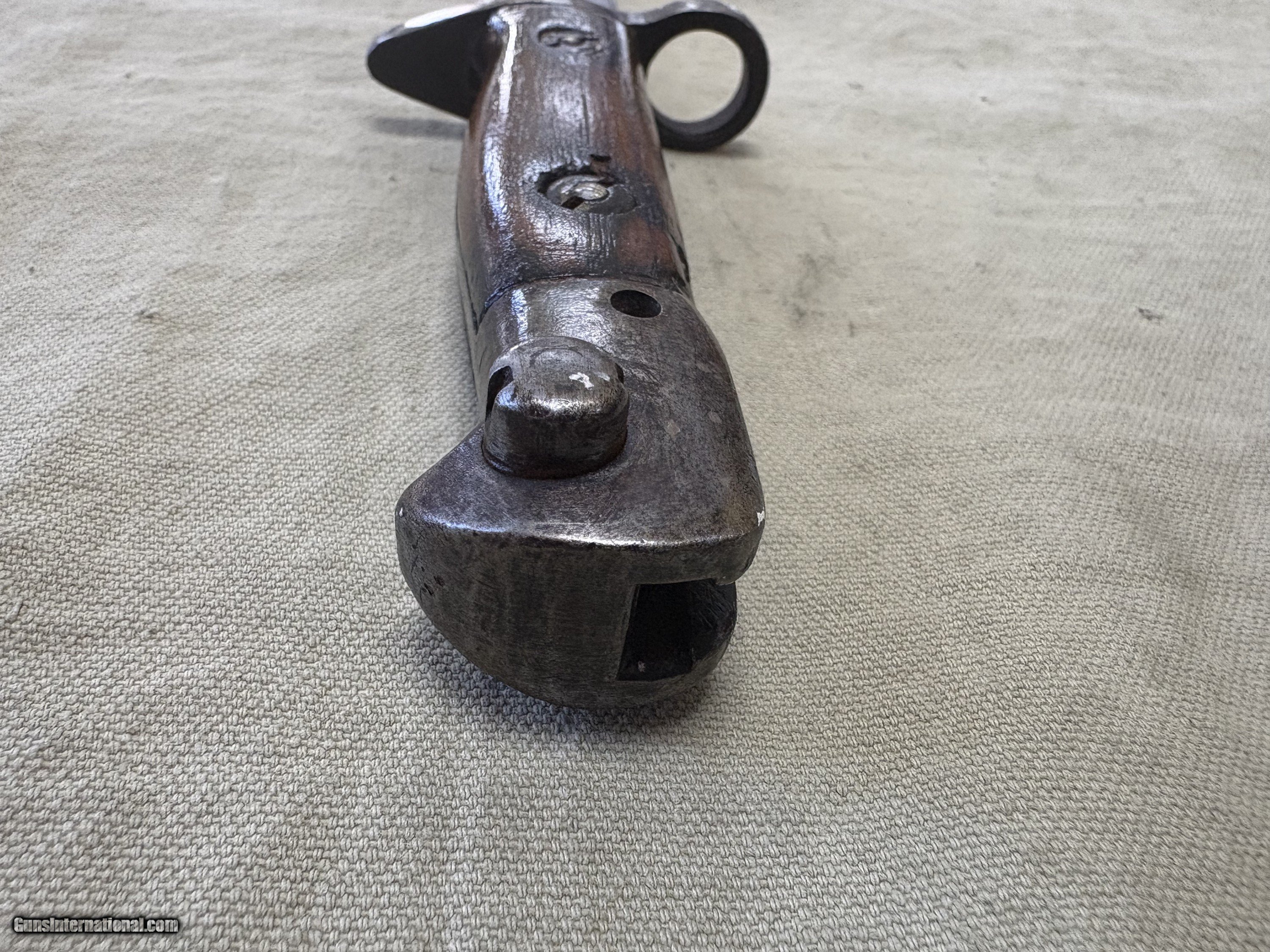 Description: THIS IS AN ENFIELD 1907 BAYONET EFD STAMPED MADE IN NOVEMBER 1915 THE WOOD HANDLES APPEAR TO BE ORIGINAL THE BLUEING IS ALL BUT GONE THE SHEATH HAS A STAMP ON THE BACK THAT APPEARS AS "GF" IN AN OVAL AS SHOWN WITH NOTHING ELSE THERE IS NO INSPECTION PERIOD OFFERED OR GIVEN SO BUY KNOWING THAT BUYER PAYS A FIXED AMOUNT OF 0.00 INSURED SHIPPING TO THE LOWER MAINLAND STATES $35.00 FOR ALASKA, HAWAII OR PUERTO RICO NO SHIPMENT OUTSIDE THE USA. MISSOURI RESIDENTS DO PAY A 8.575% SALES TAX. NO CHARGE FOR CREDIT CARD ON THIS PURCHASE. YOU WONT NEED A DEALER OR FFL AND THIS BAYONET CAN BE SHIPPED DIRECT BUT UNDERSTAND THAT WE WILL PUT A SIGNATURE ON THE PACKAGE SO IT WON'T GET LEFT ON A PORCH BRANDON'S GUN TRADING CO LLC 321 EAST 20TH ST JOPLIN MO. 64804 (417)-623-8787 FAX (417)-623-2326 9-5 TUESDAY-SATURDAY CENTRAL TIME WE ARE ALSO CLOSED THE 1'ST SATURDAY OF EVERY MONTH AND HOLIDAYS. OUR INVENTORY REFERENCE; RACK 5 PLEASE NOTE, UPS SERVICE HAS GOTTEN SO BAD UNDER CURRENT MANAGEMENT THAT WE WON’T SHIP UPS UNLESS WE ABSOLUTELY HAVE TOO. WHEN WE DOUBLE PACK, INSURE, ADD SIGNATURE, USE GOOD BOXES AND UPS EVEN NOTES THEY DAMAGED THE ITEM AND THEY STILL WON'T PAY SO AFTER 27 YEARS WE ARE DONE WITH UPS ALSO, ANY INSURANCE WE DO PUT ON OUR PACKAGES IS VOID IF YOU OR YOUR DEALER THROWS AWAY THE BOX, ANY PACKING MATERIALS OR FAILS TO PICTURE AND NOTIFY US AND THE SHIPPING COMPANY IMMEDIATELY Price: $120.00 Contact Seller |