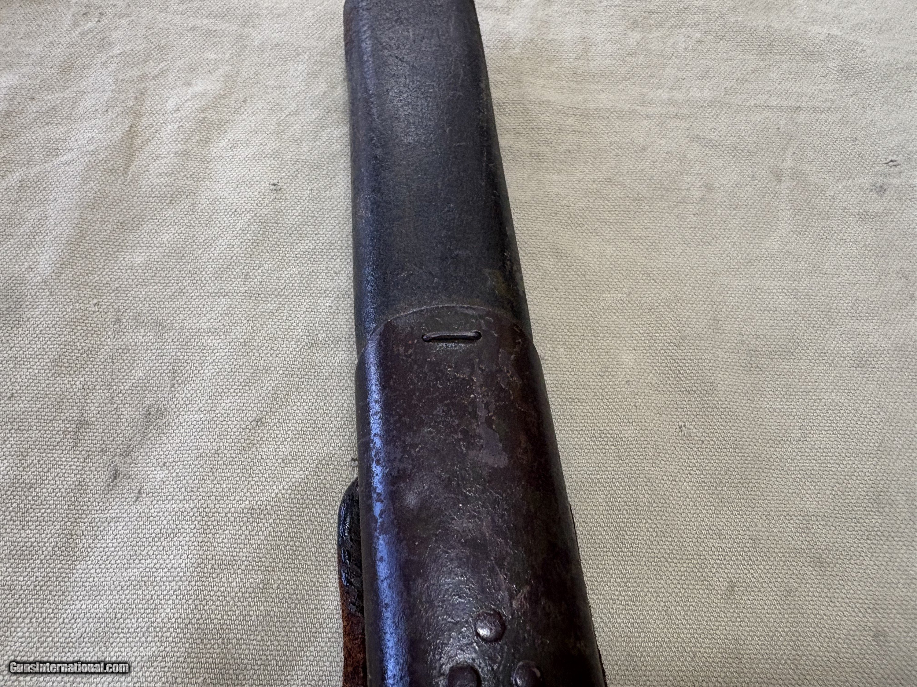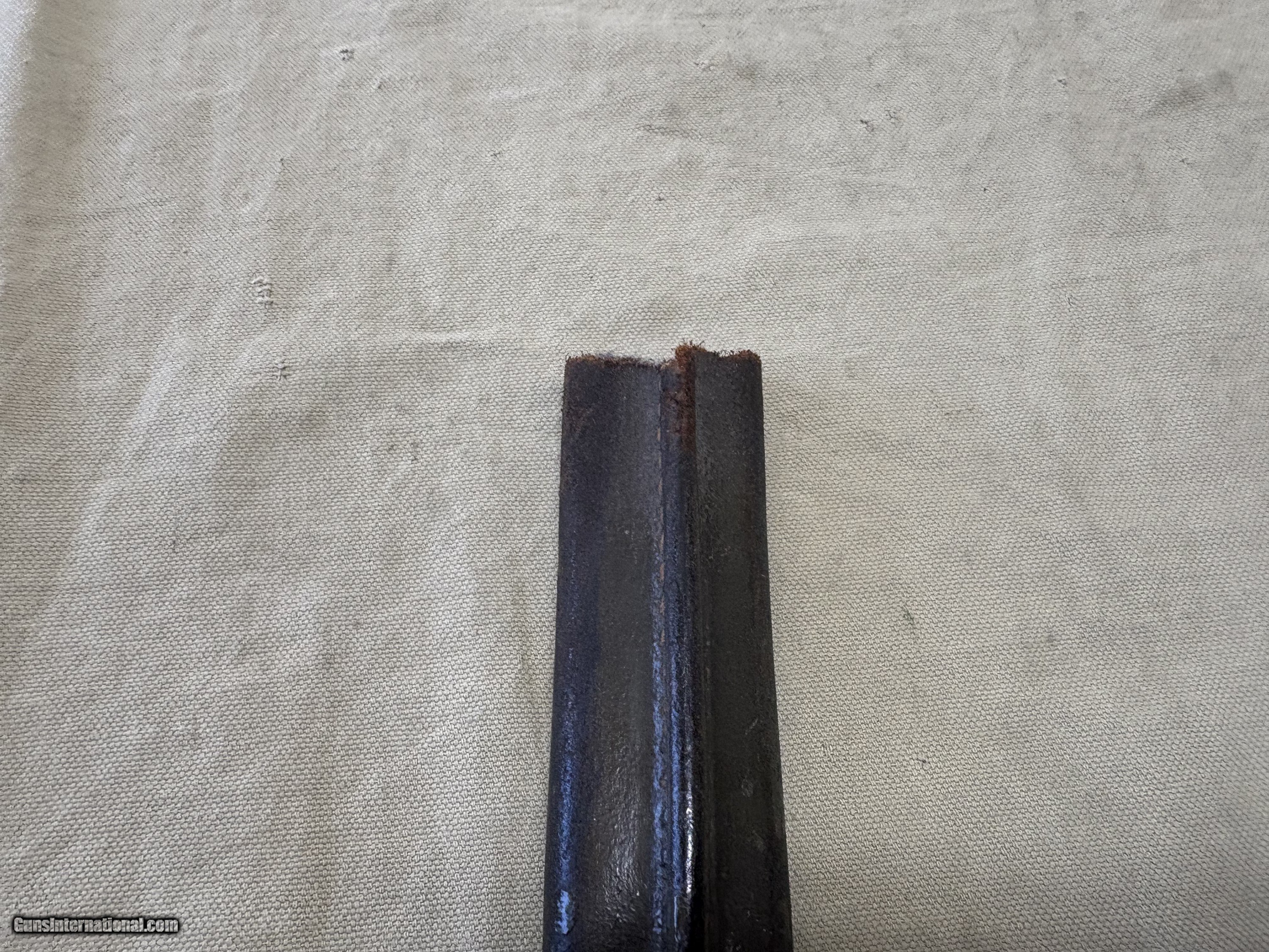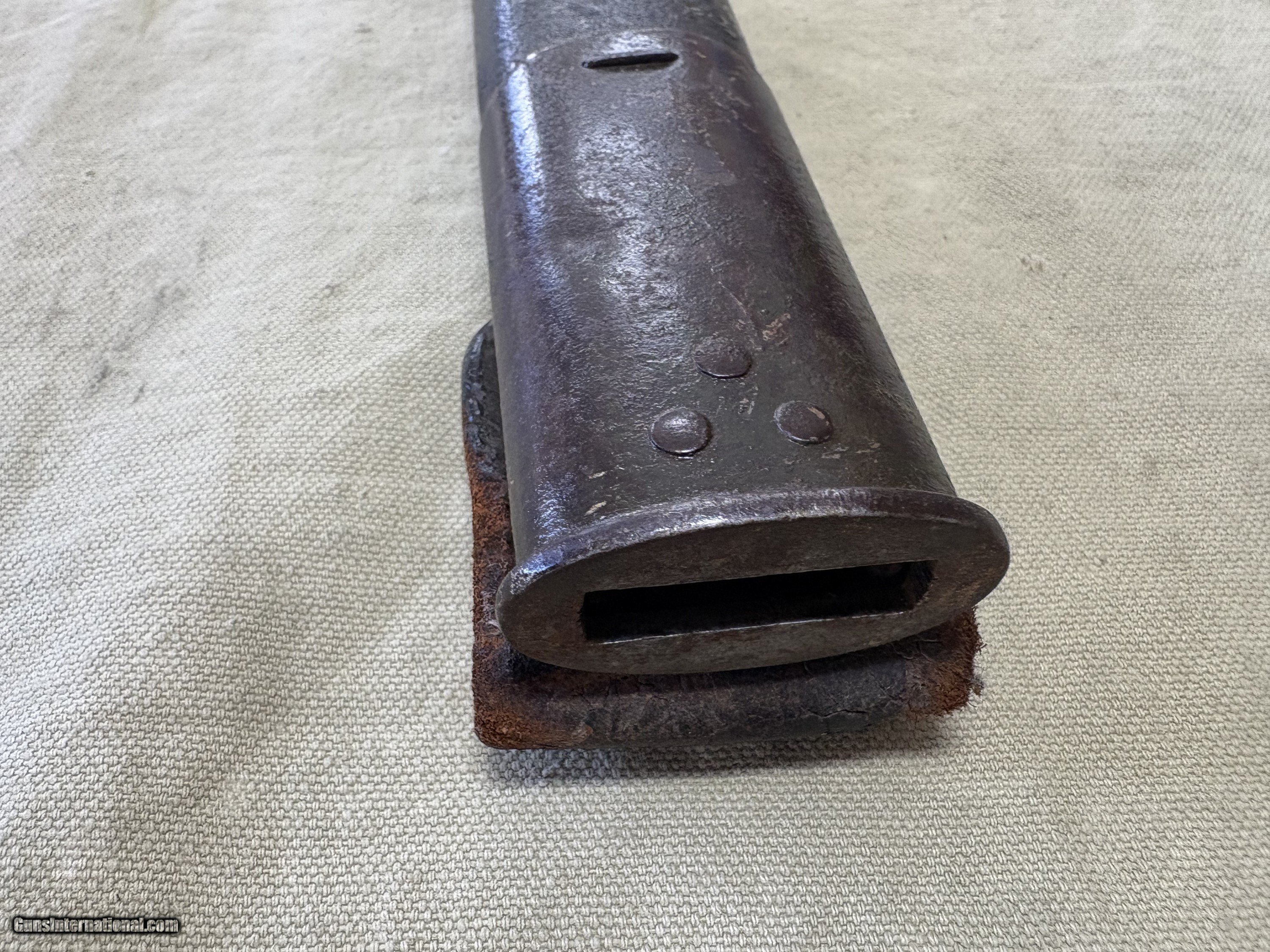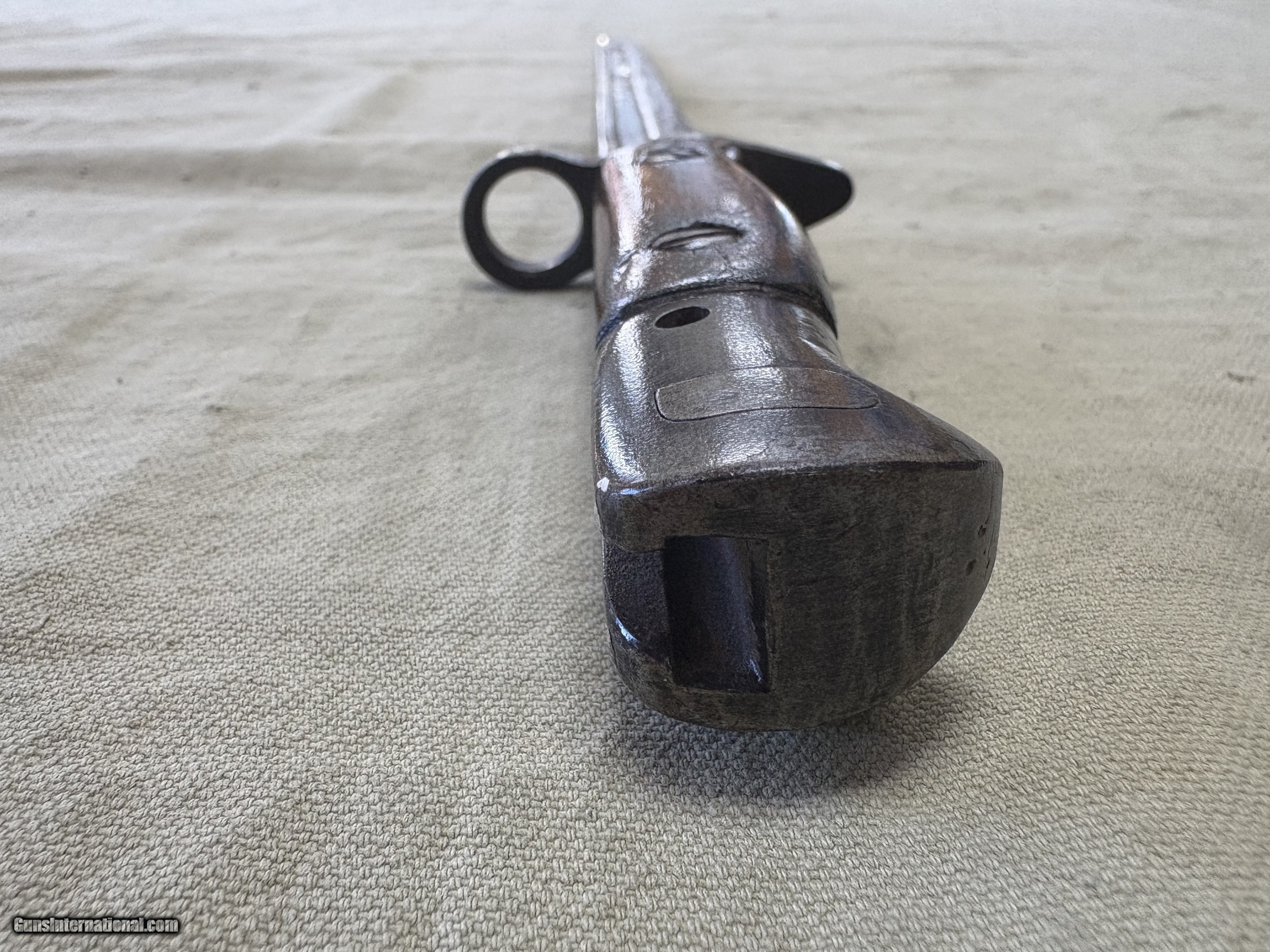 Description: THIS IS AN ENFIELD 1907 BAYONET EFD STAMPED MADE IN NOVEMBER 1915 THE WOOD HANDLES APPEAR TO BE ORIGINAL THE BLUEING IS ALL BUT GONE THE SHEATH HAS A STAMP ON THE BACK THAT APPEARS AS "GF" IN AN OVAL AS SHOWN WITH NOTHING ELSE THERE IS NO INSPECTION PERIOD OFFERED OR GIVEN SO BUY KNOWING THAT BUYER PAYS A FIXED AMOUNT OF 0.00 INSURED SHIPPING TO THE LOWER MAINLAND STATES $35.00 FOR ALASKA, HAWAII OR PUERTO RICO NO SHIPMENT OUTSIDE THE USA. MISSOURI RESIDENTS DO PAY A 8.575% SALES TAX. NO CHARGE FOR CREDIT CARD ON THIS PURCHASE. YOU WONT NEED A DEALER OR FFL AND THIS BAYONET CAN BE SHIPPED DIRECT BUT UNDERSTAND THAT WE WILL PUT A SIGNATURE ON THE PACKAGE SO IT WON'T GET LEFT ON A PORCH BRANDON'S GUN TRADING CO LLC 321 EAST 20TH ST JOPLIN MO. 64804 (417)-623-8787 FAX (417)-623-2326 9-5 TUESDAY-SATURDAY CENTRAL TIME WE ARE ALSO CLOSED THE 1'ST SATURDAY OF EVERY MONTH AND HOLIDAYS. OUR INVENTORY REFERENCE; RACK 5 PLEASE NOTE, UPS SERVICE HAS GOTTEN SO BAD UNDER CURRENT MANAGEMENT THAT WE WON’T SHIP UPS UNLESS WE ABSOLUTELY HAVE TOO. WHEN WE DOUBLE PACK, INSURE, ADD SIGNATURE, USE GOOD BOXES AND UPS EVEN NOTES THEY DAMAGED THE ITEM AND THEY STILL WON'T PAY SO AFTER 27 YEARS WE ARE DONE WITH UPS ALSO, ANY INSURANCE WE DO PUT ON OUR PACKAGES IS VOID IF YOU OR YOUR DEALER THROWS AWAY THE BOX, ANY PACKING MATERIALS OR FAILS TO PICTURE AND NOTIFY US AND THE SHIPPING COMPANY IMMEDIATELY Price: $120.00 Contact Seller |