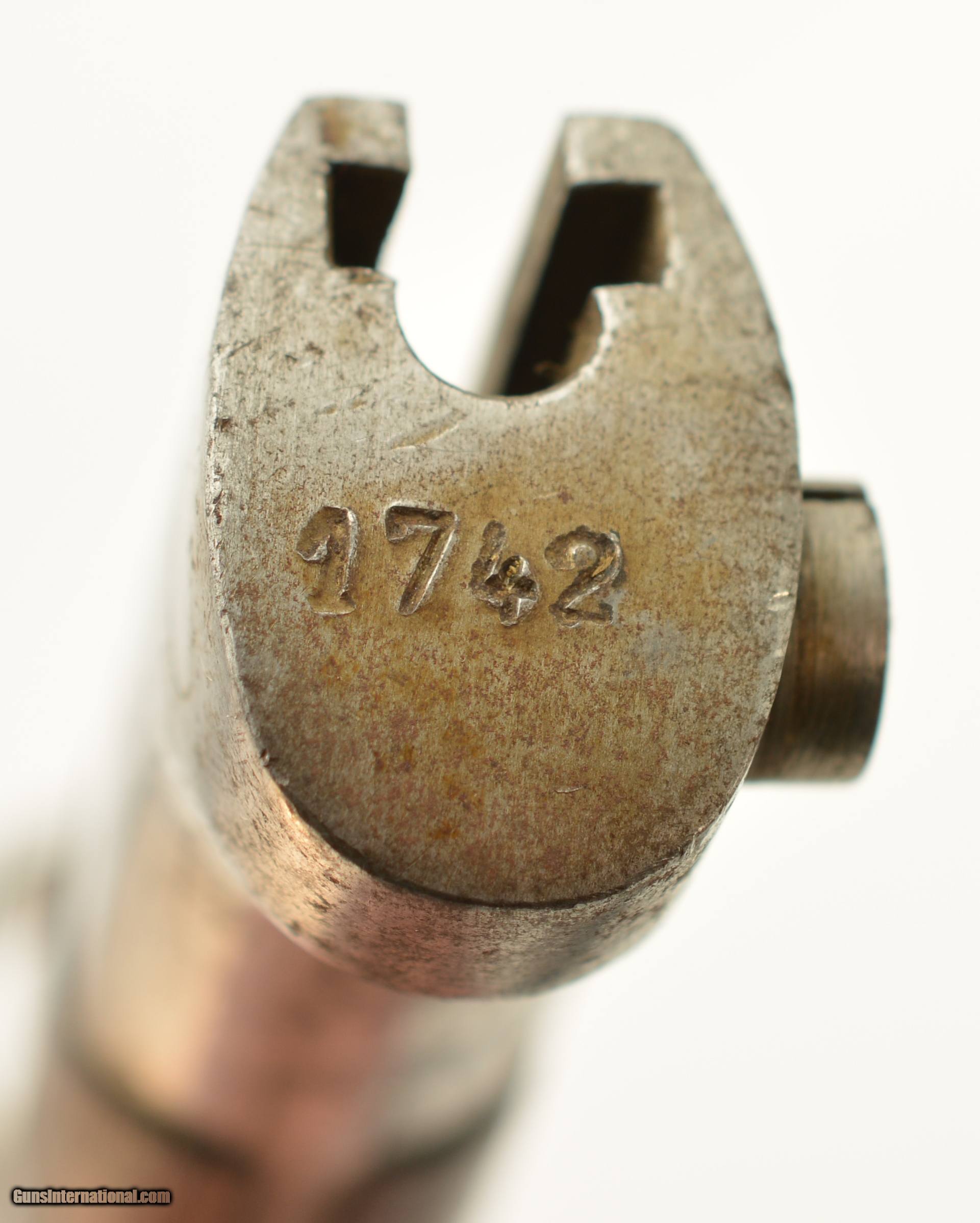 Description: This is the FN Model 98 Mauser long export pattern bayonet that fits the FN Mauser model 98, 1924, 24/30 and 34 along with the Yugoslavian Model 1924 Mauser. It measures 20 ½" with an unmarked 15 1/8" blade that is in excellent brightly polished condition with only minor carbon staining. The steel cross guard and pommel (numbered on the top) show light freckling and handling scratches with excellent wood grips that show light use marks. The black steel scabbard is very good with numerous scratches and overall freckling. SOLD Manufacturer: Mauser Model: Bayonet |
