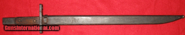 Description: sale pending chris b-THIS JAPANESE BAYONET IS A LAST DITCH MODEL MADE FOR A TYPE 99 RIFLE. THE SERIAL NUMBER APPEARS TO BE 4347578 (IT'S A LITTLE HARD TO SEE THE LAST #) AND IT WAS MADE BY TOYADA JIDOSHOKI SEISAKUSHO (TOYADA AUTOMATIC LOOM WORKS, LTD.) IN NAGOYA. IN EXCELLENT CONDITION WITH ORIGINAL BLUE AND NOT SHARPENED SO IT WAS PROBABLY NOT ISSUED. IT HAS THE CRUDE LAST DITCH SQUARE STAMPED FINGER GUARD. SHIPPING IS $15.85 DIRECT TO YOU. SOLD |