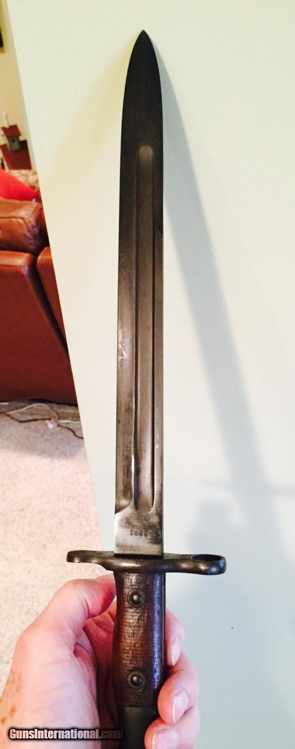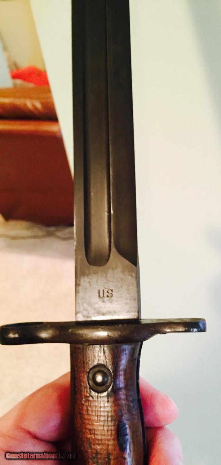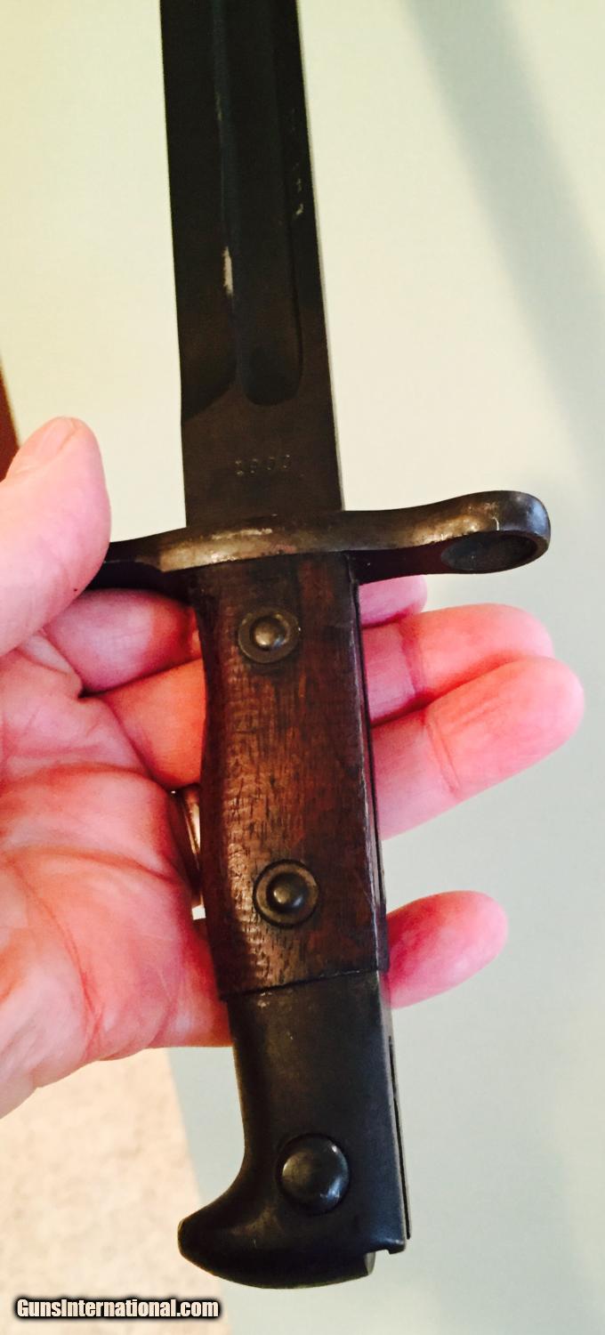 Description: One 1900 blued with scabbard -mint un issued for the 30-40 Krag One 1901 in the white with scabbard- mint un-issued for the 30-40 Krag Two prefect condition bayonets $375.00 each SOLD |