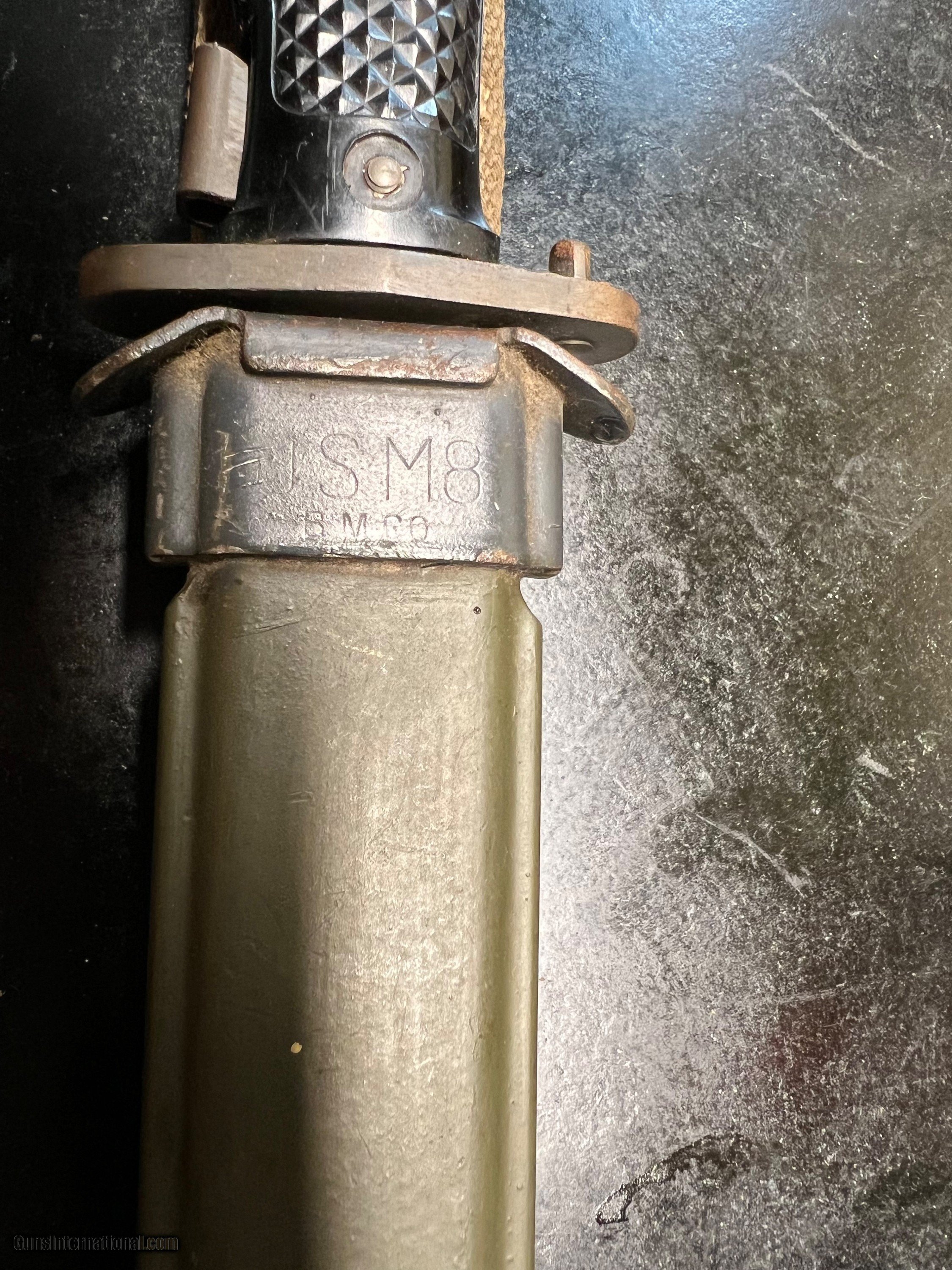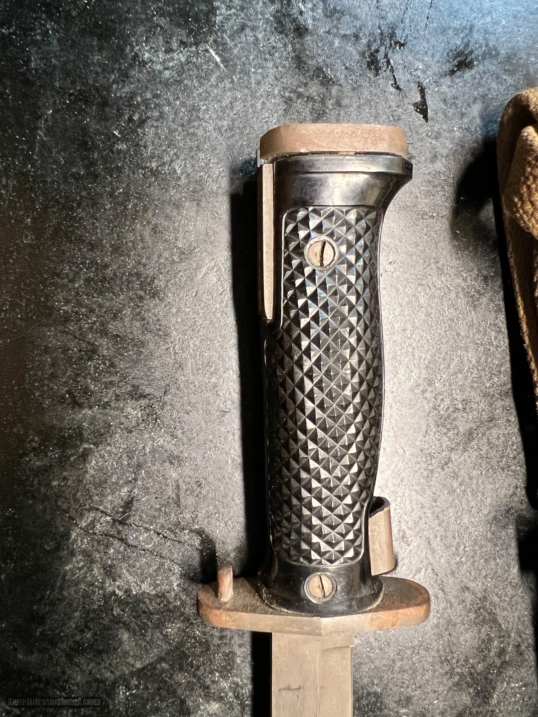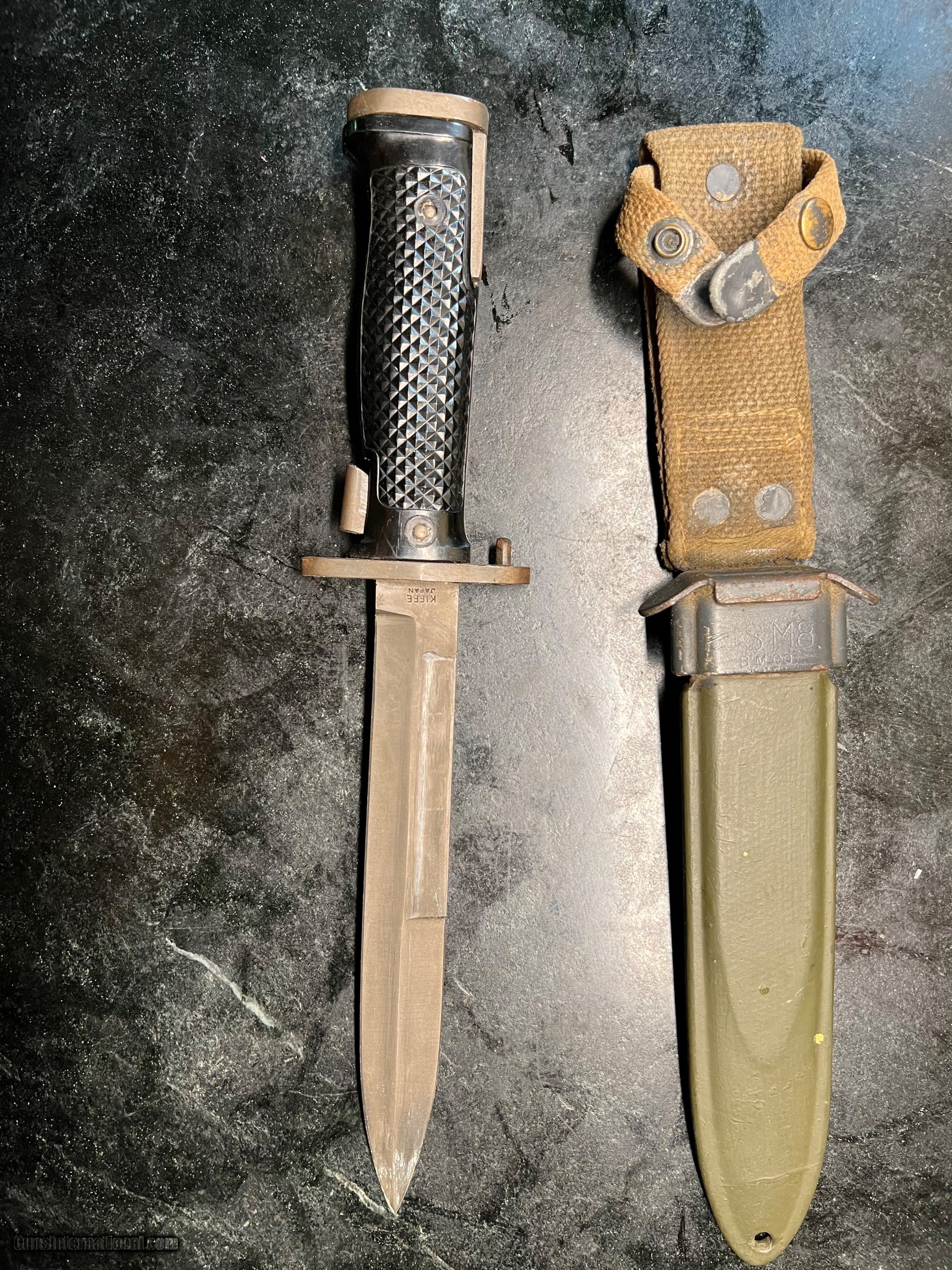 Description: Very nice Kiffe Japan M1 Garand short blade bayonet, original US M8 sheath in very nice condition SOLD |