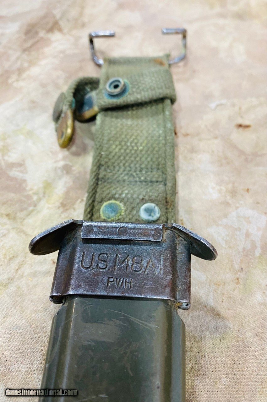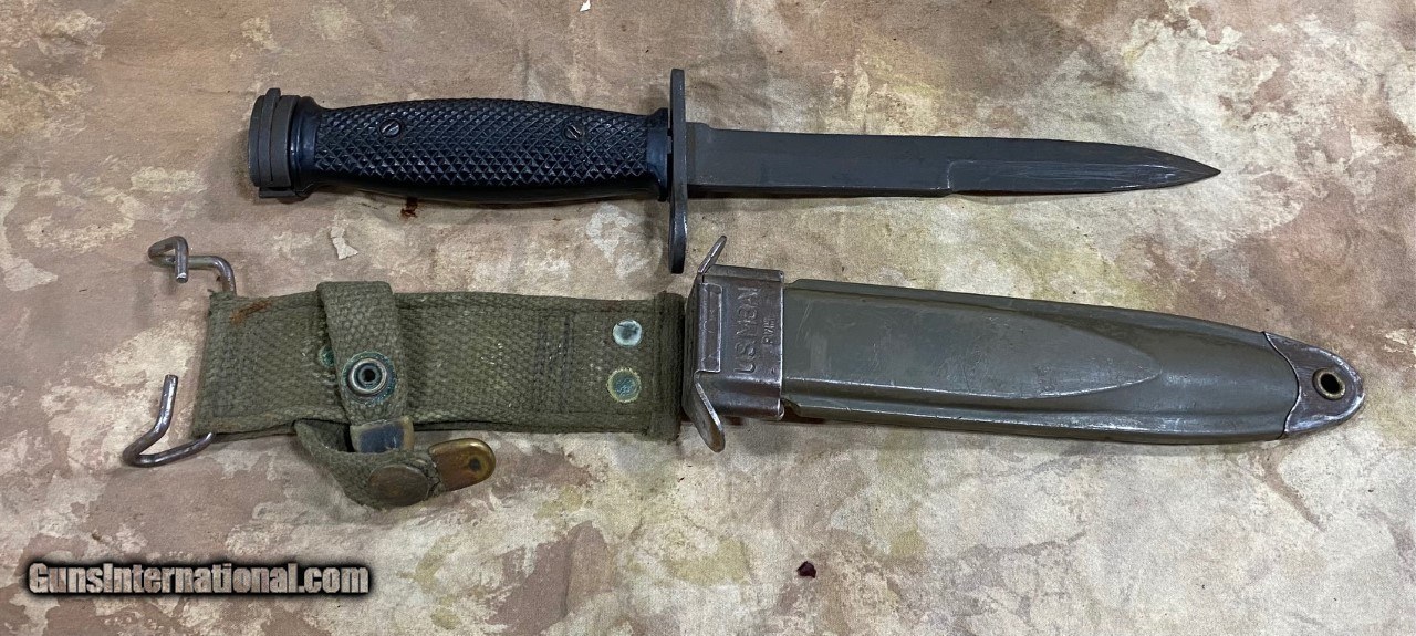 Description: M1 Carbine Bayonet with Sheath Photos Reflect actual Products to be purchased Buyer Pays $10 Shipping Condition: Used / Issued PAYMENT: -Payment must be received within 7 days of purchase SHIPPING & HANDLING: Buyer pays Shipping. Shipping cost will be calculated based on Final weight and destination. SHIPPING FIREARMS: -Firearms shipped to FFL dealer only -We will ship upon receipt of payment and signed legible copy of dealers FFL via Fax, Mail or E-mail. SALES TAX: -Kentucky residents add 6% sales tax. PRODUCT: -We operate a gun shop which means that every item is for sale in our store and it may have already been sold when you contact us. CONTACT: -Contact our Staff with any questions we are glad to assist you. PHONE #: (859) 221-7107 STORE HOURS: Mon-Fri: 10pm -6pm Sat: 9am -2pm BUYER: -It is Buyer's responsibility to ensure that the weapon is LEGAL to own in your city/state. SOLD |