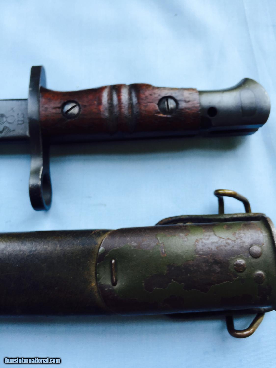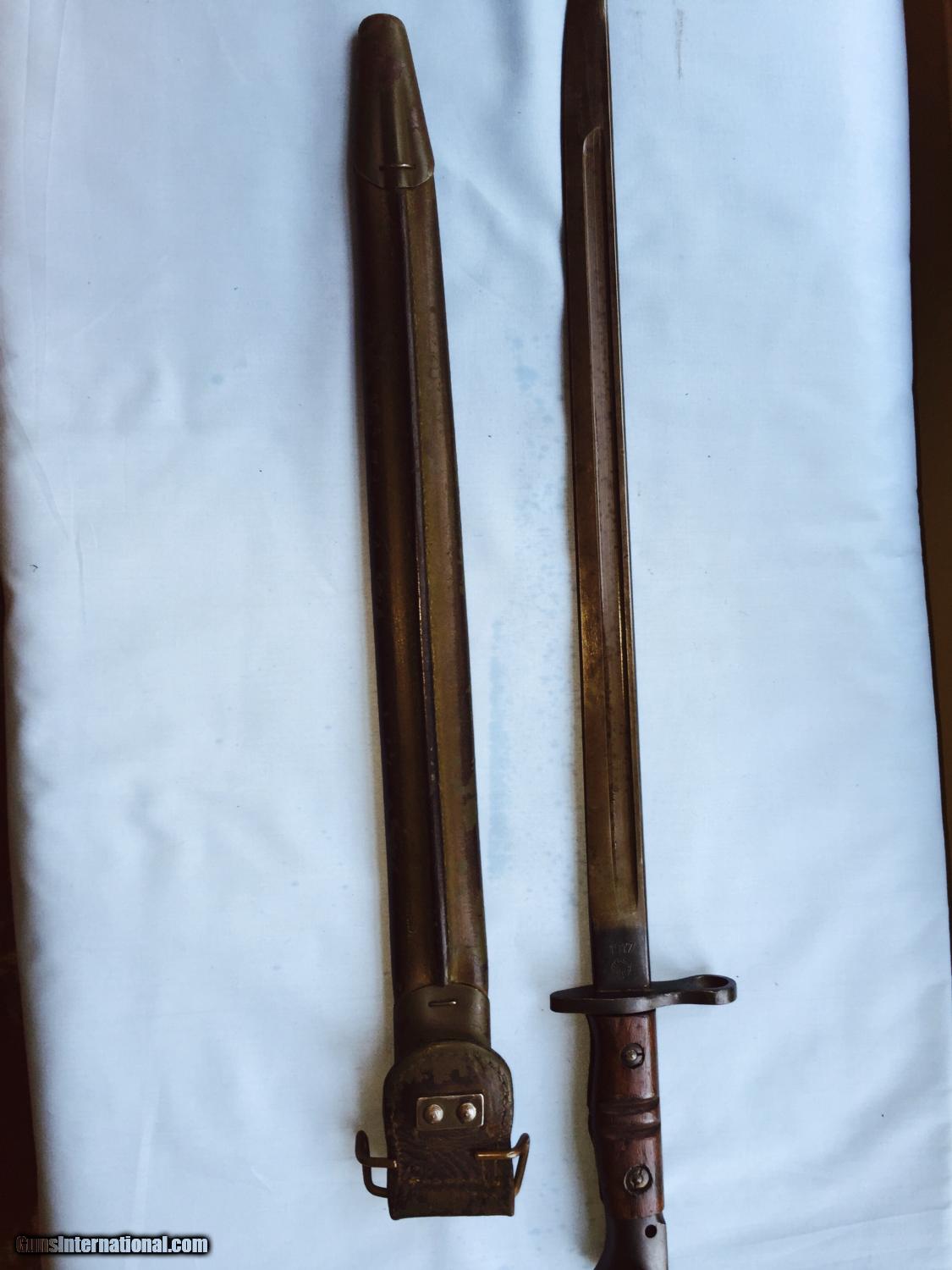 Description: Hard to find WWI bayonet for the Enfield/Springfield and even the WWII trench gun in un used un issued mint condition -perfect blade and scabbard. SOLD |