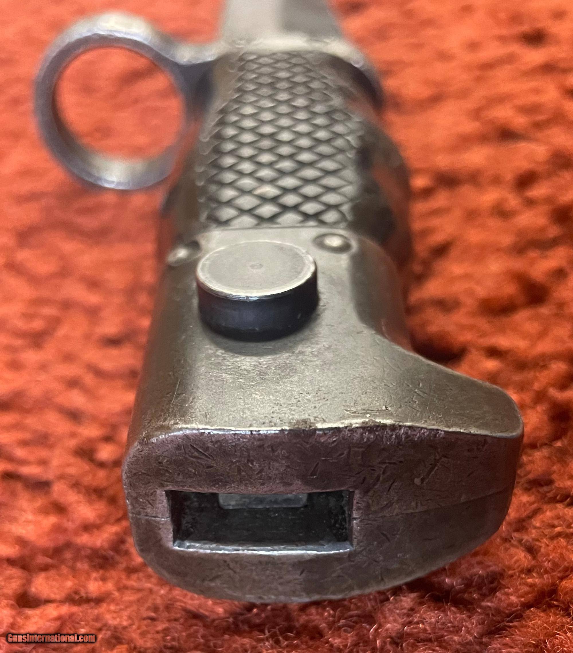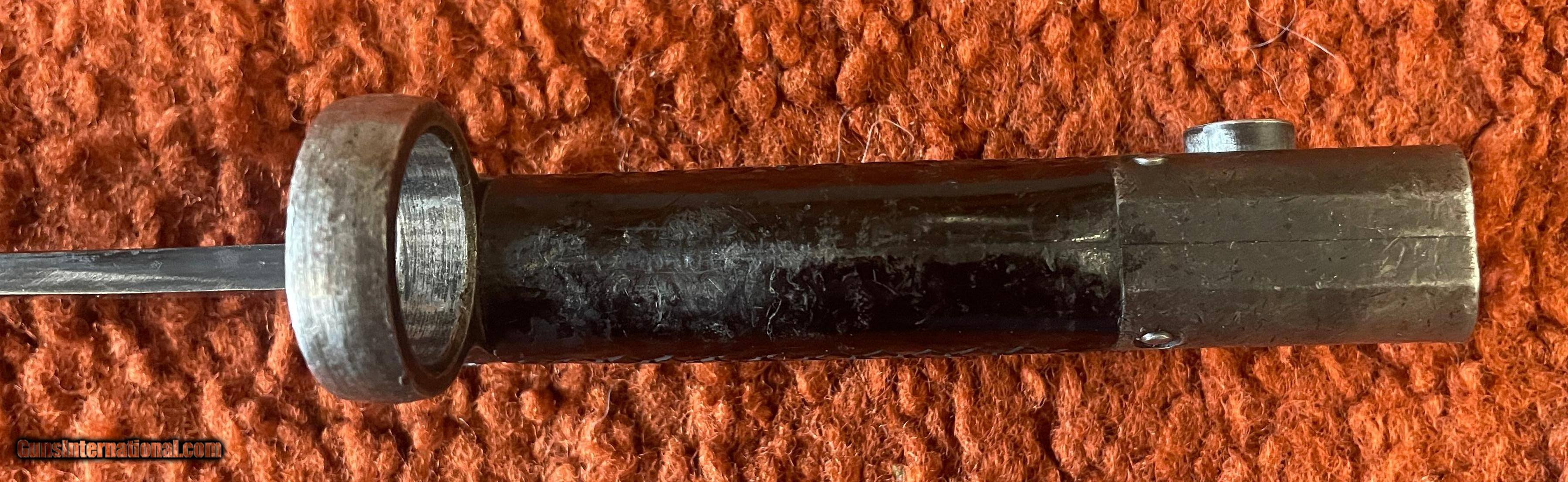 Description: Bayonet overall lenth 13.25". Blade 8.75". Muzzle ring inside diameter .86" or 22MM. See photos for condition. SOLD |