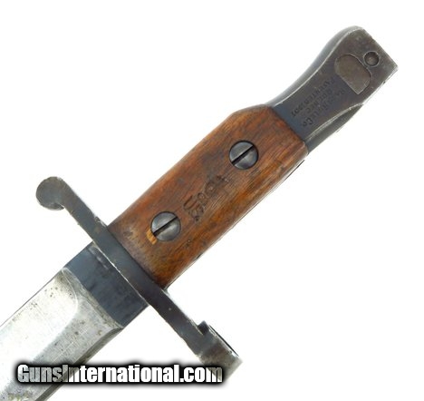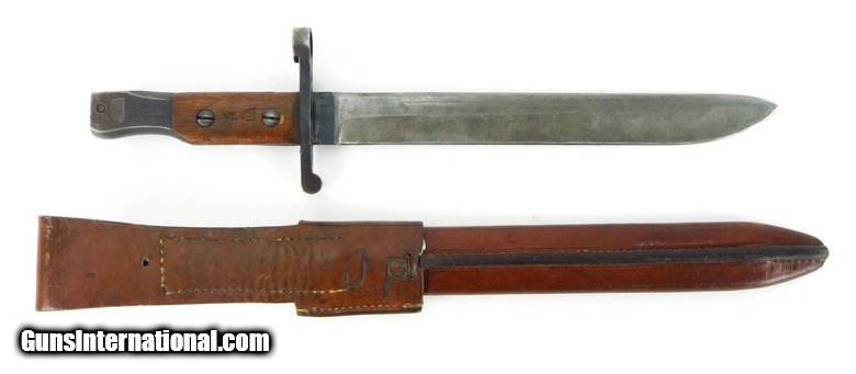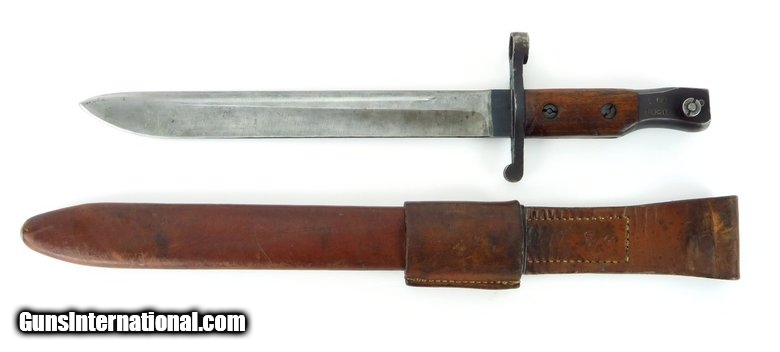 Description: Ross Rifle Bayonet. Bayonet and leather scabbard are U.S. marked with flaming bomb. Very good plus overall condition. SOLD |