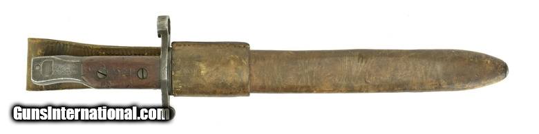 Ross Rifle Bayonet. U.S. marked on grip and Canadian marked on pommel. Leather scabbard is also flaming bomb U.S. marked.