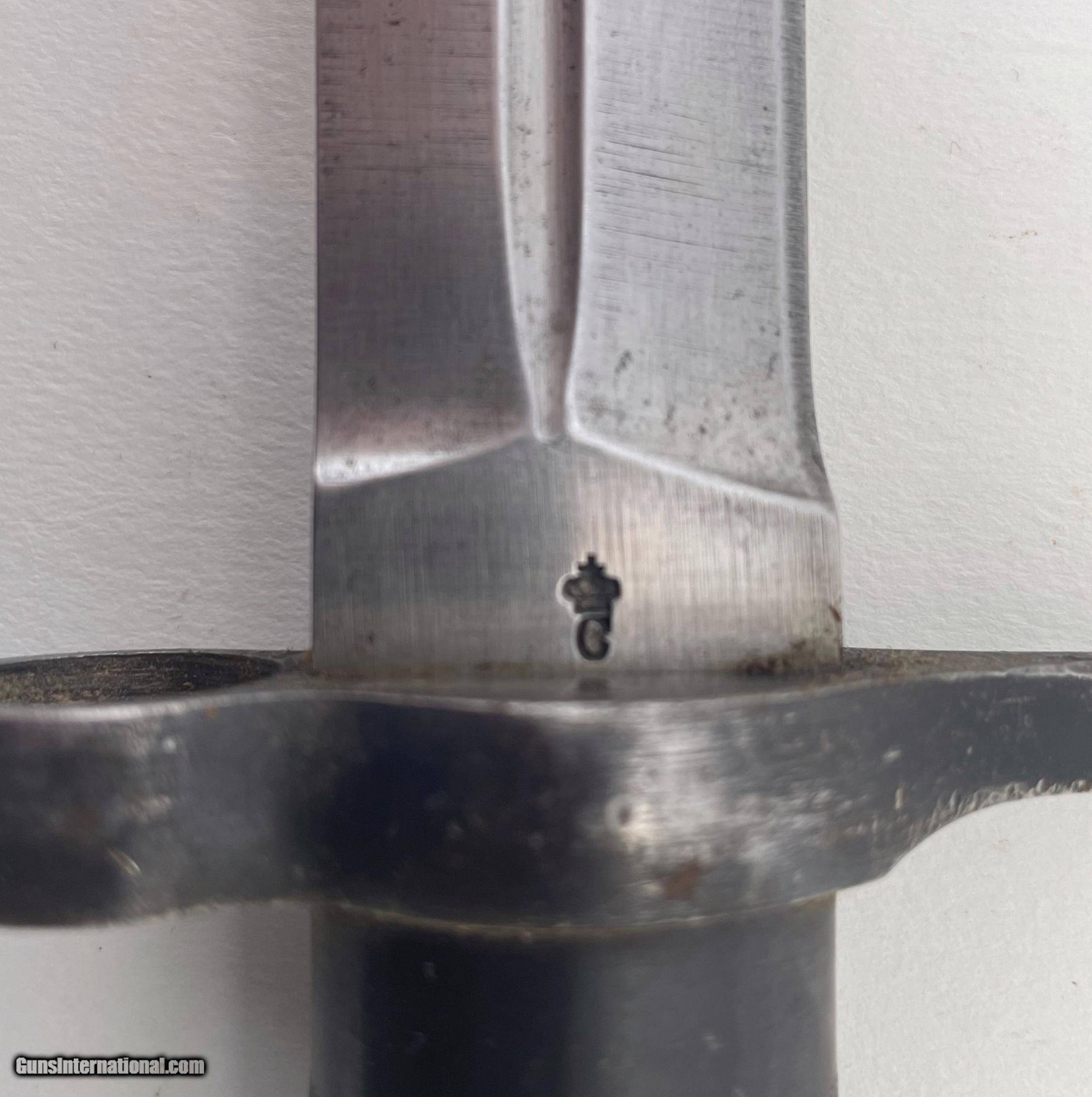 Description: Overall length including frog 16.7" Bayonet 13.15" Blade 8.25" Muzzle ring inside diameter 15.5" See photos for condition SOLD |