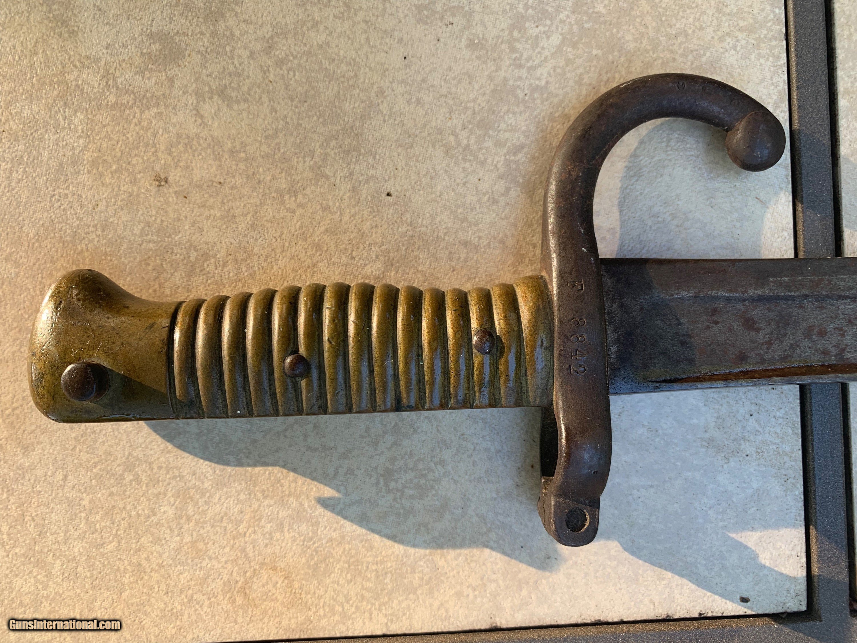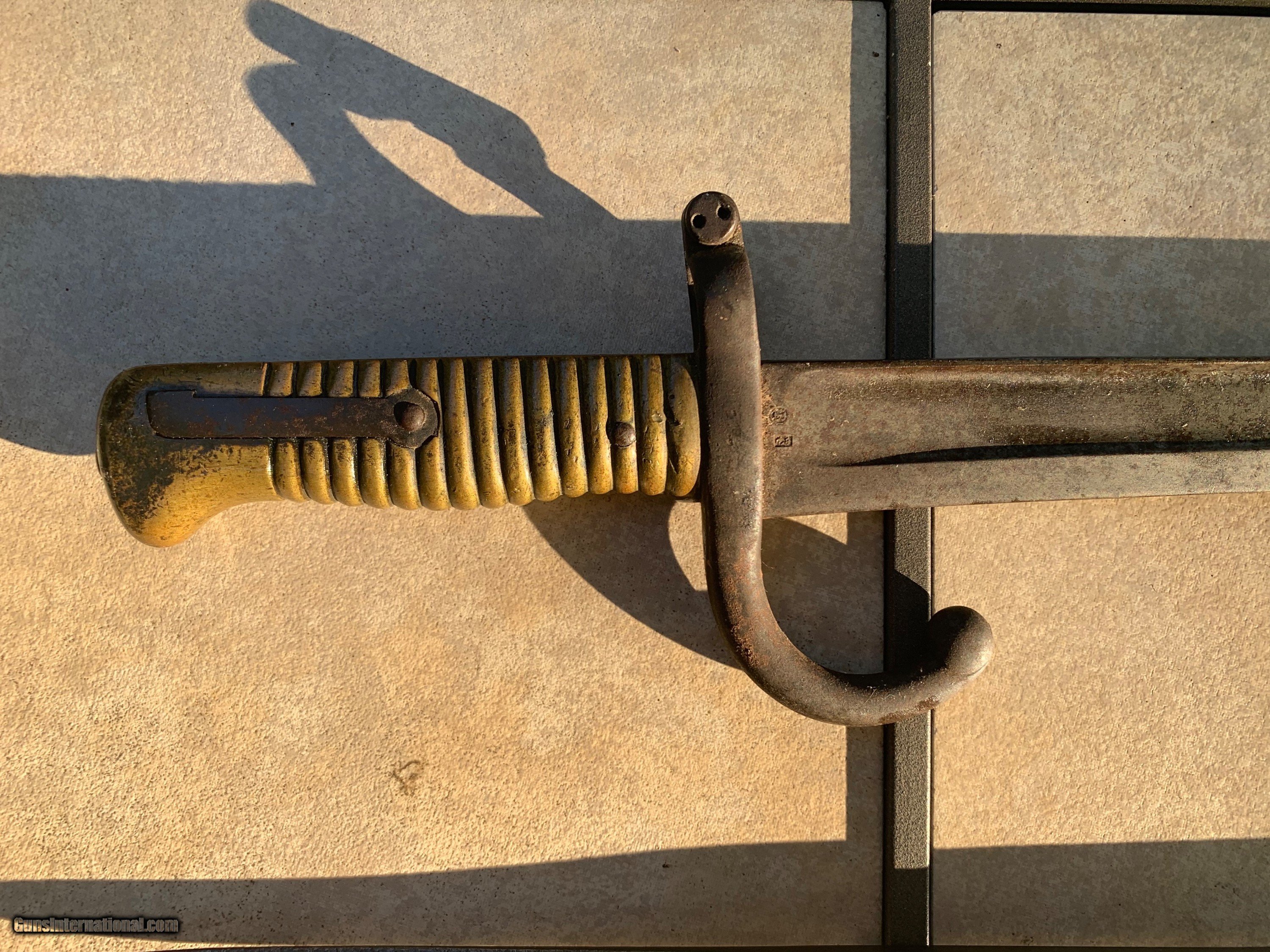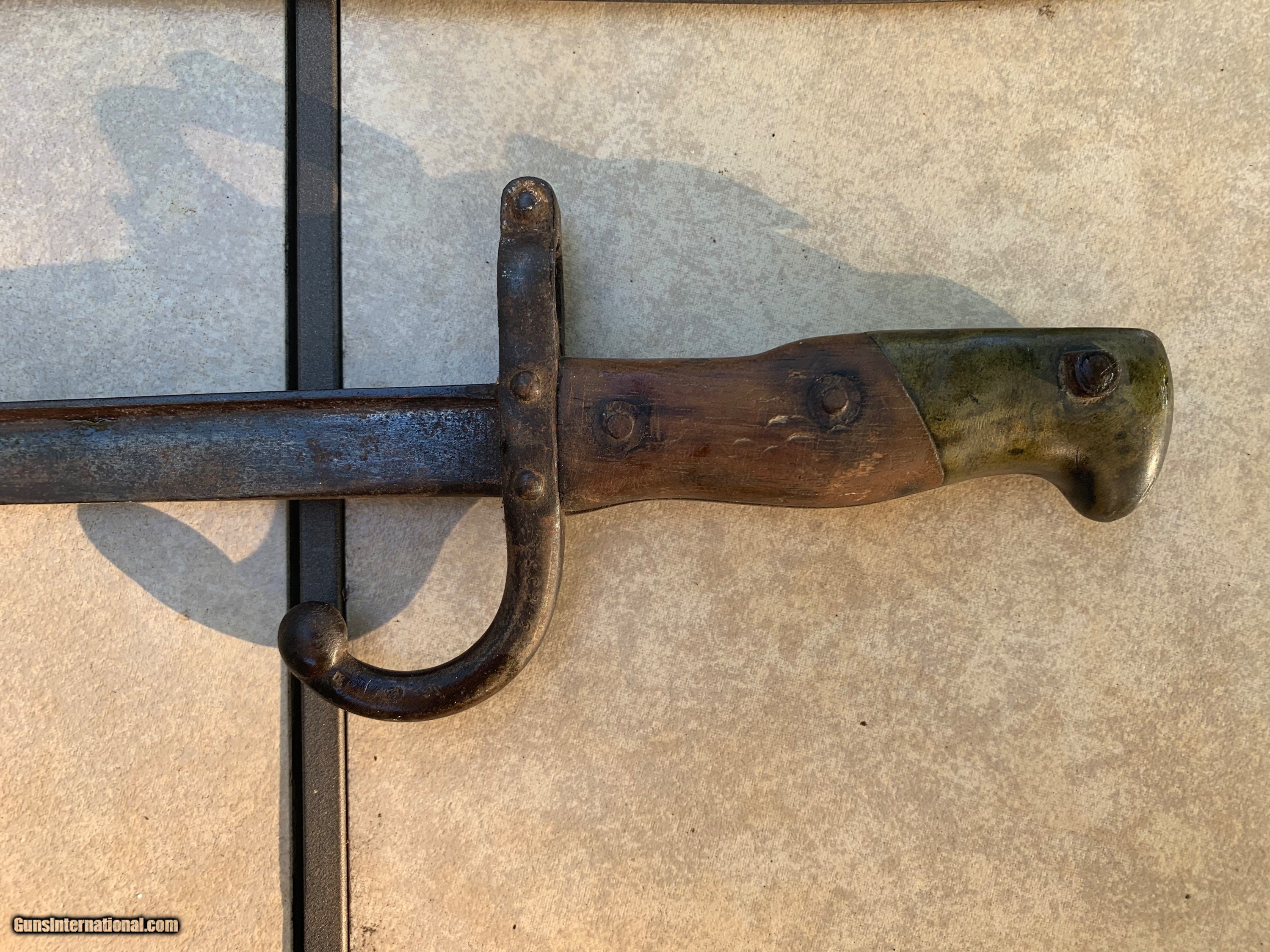 Description: Curved blade bayo inscribed with a name and 1867. The straight blade bayo is inscribed with a name and 1879. Buyer pays shipping. SOLD |
