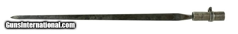 Description: U.S. Model 1855/70 Civil War Era Musket Bayonet. Bayonet in good condition. Has brown patina by the socket. Blade has area of surface pitting. Comes with a metal scabbard. SOLD |