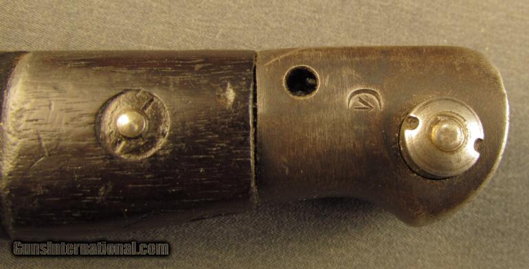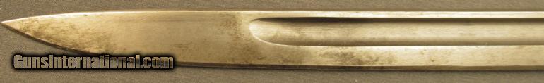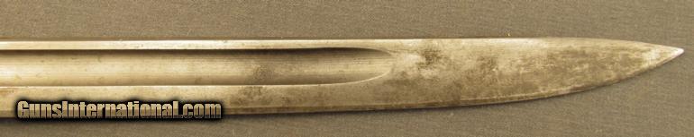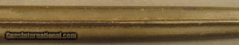 Description: Manufactured by Winchester with Canadian broad arrow marking on side of pommel. Ricasso marked with ordnance eagle/flaming bomb/US. Reverse marked 1917/W in a circle. Edge has been sharpened. Lightly etched in blade 1236 and 236. Guard is snug. Walnut grips have light dings and minor chips. Scabbard is the type II inspector marked EJB and GF. Throat and tip have an applied coat of varnish. Condition is very good. SOLD Manufacturer: Canadian Model: 1917 |