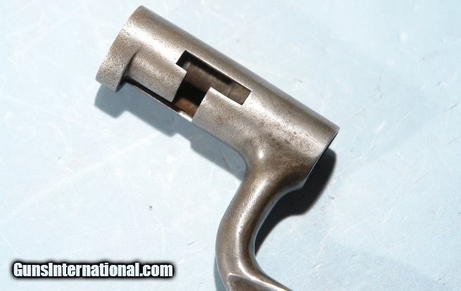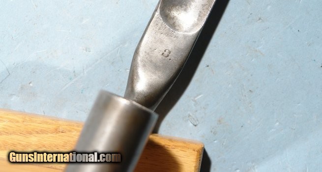 Description: VERY GOOD HEWES & PHILLIPS U.S. MODELS 1816 & 1835/40 PERCUSSION CONVERSION MUSKET BAYONET CIRCA 1861 -REILLY # B96. 21 ¼” overall. 18” blade stamped “US” with the “U” a partial strike. Fine grey patina some very light salt and pepper on back of blade. Good crisp blade edges. Reasonably priced. SOLD |