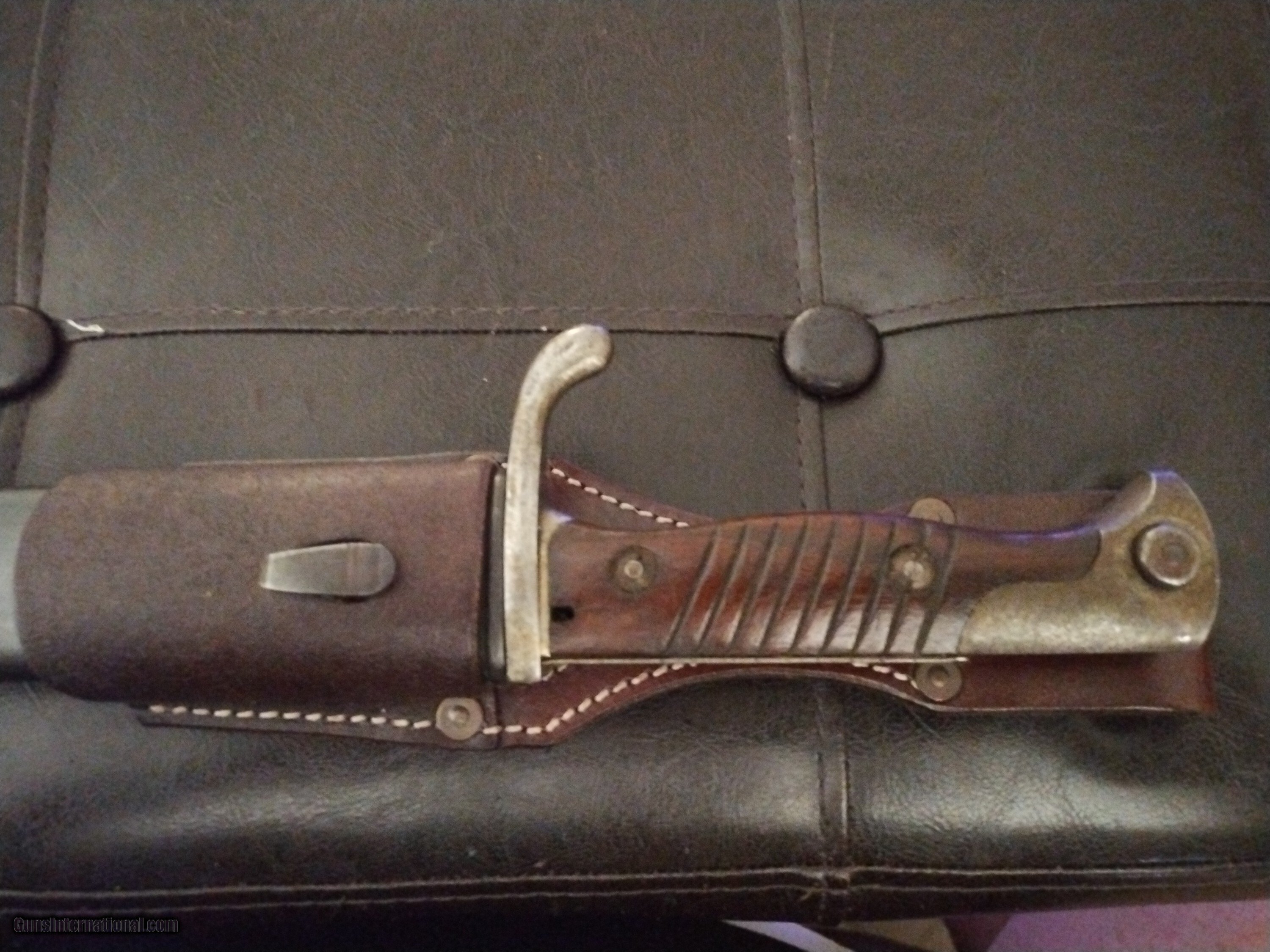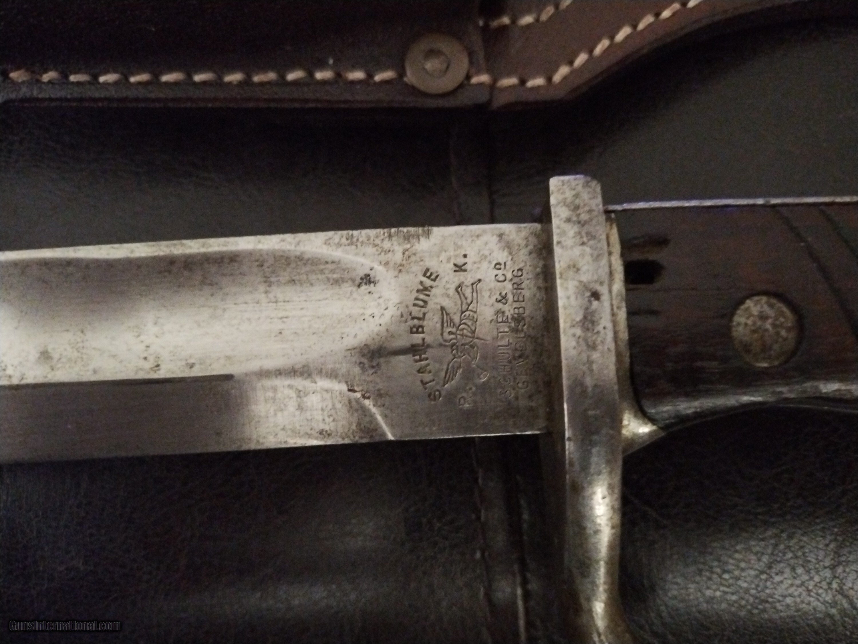 Description: Original WW1 1898 German bayonet. Excellent condition. Scabbard excellent as well. Hi quality reproduction leather frog. Maker STAHLBLUME R.K. Price includes shipping and tracking. Domestic only. Personal check or M.O. works. Thanks Dennis Perry. Price: $335.00 Contact Seller |