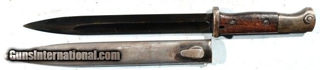 Description: WW2 MAUSER S84/98 K98K OR KAR 98 BAYONET & SCABBARD BY CHATELLERAULT (FRENCH OCCUPATION). Blade with all the original blue and false edge with no signs of cleaning or refurbishment. Original color on all other metal parts(Exterior) fading to a mottled appearance but all original(same on scabbard). Original wood grip panels never sanded with excellent unturned screws. Ricasso with serial number and "f" with opposite having the Chatellerault code "JWh" and corresponding waffenamts "WaA251" at pommel. Scabbard having no markings but fits perfectly. Not that valuable but rare and a must for a collector as made after the invasion/occupation and by one of the most famous blade manufacturers of France. SOLD |