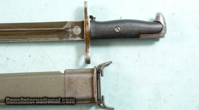 WW2 U.F.H. (UNION FORK & HOE) U.S. MODEL 1942 BAYONET & M3 SCABBARD FOR M-1 GARAND & 1903 RIFLE.