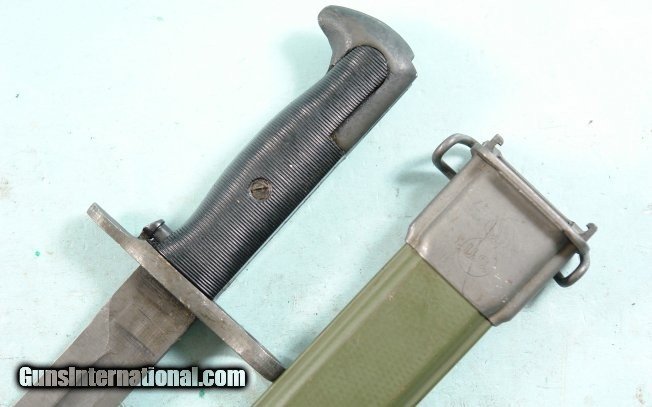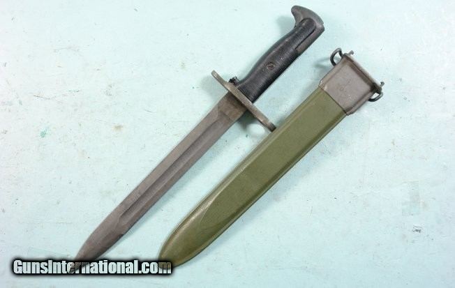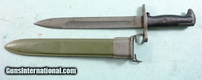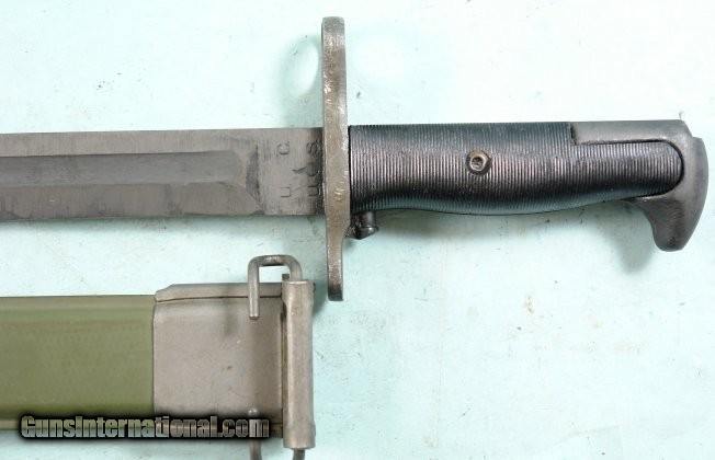 WW2 UTICA CUTLERY U.S. MODEL M1 OR M-1 GARAND RIFLE BAYONET WITH CORRECT M7 SCABBARD.