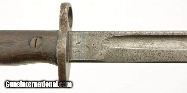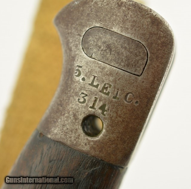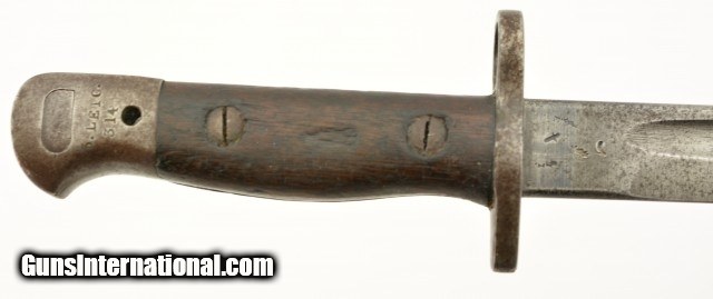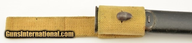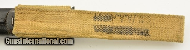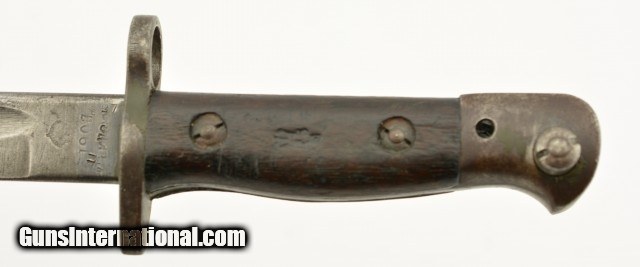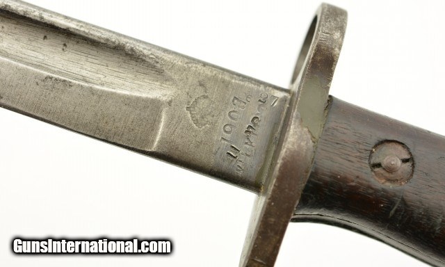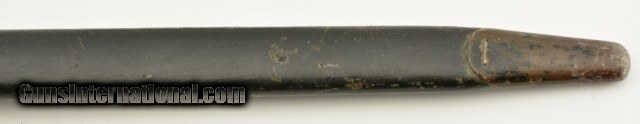 Description: This is a unaltered British Pattern 1907 second model made by Wilkinson in 11/18 and remarked for duty in 1927. It is also marked "5.LEIC./314 for 5th Leicestershire. This bayonet most likely saw use in both World Wars. The blade is in very good to excellent unsharpened condition with light oxidation and nearly unmarred edge and correct tip. The crossguard shows signs of normal wear and light oxidation. The handle has a deep rich patina with proof marks on both sides. Lastly ending in a functional rifle lug pommel with unit markings and the correct oil cleaning hole. Comes with a correct scabbard in very good condition with canvas frog. 21 3/4 over-all. SOLD |