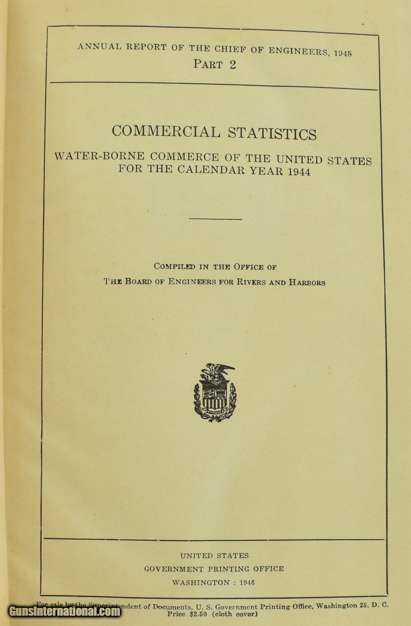 Description: "Book: "Annual Report of the Chief of Engineers 1945, Part 2". Commercial statistics of the United States for the calendar year 1944 from the office of the Boards of Rivers and Harbors. SOLD |
