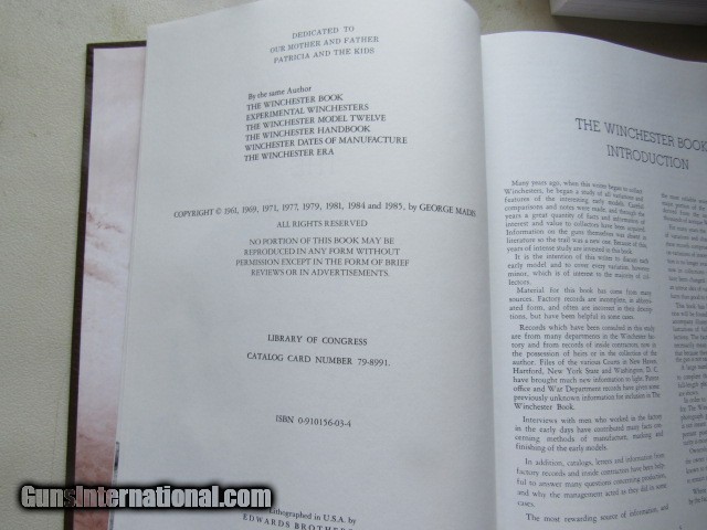 Description: Brown hardcover book with no dust jacket, excellent used condition, copyright 1985, not signed, 654 comprehensive pages on almost all of the Winchester firearm models, plus extras and special order features, factory drawings, black-and-white pictures. This was the first comprehensive literature regarding the Winchester company, its predecessor firearms, and its own firearms (first edition came out in 1961). TERMS: No international sales. Free shipping by USPS Media Mail with tracking. Payment by bank check, money order or personal check. All major credit cards accepted with 4% convenience fee added. Always interested in Civil War, Old West and other firearms so please contact me if you have something for trade or sale. Thanks for looking and please check my other listings. 315.251.4799 with questions or concerns. SOLD |