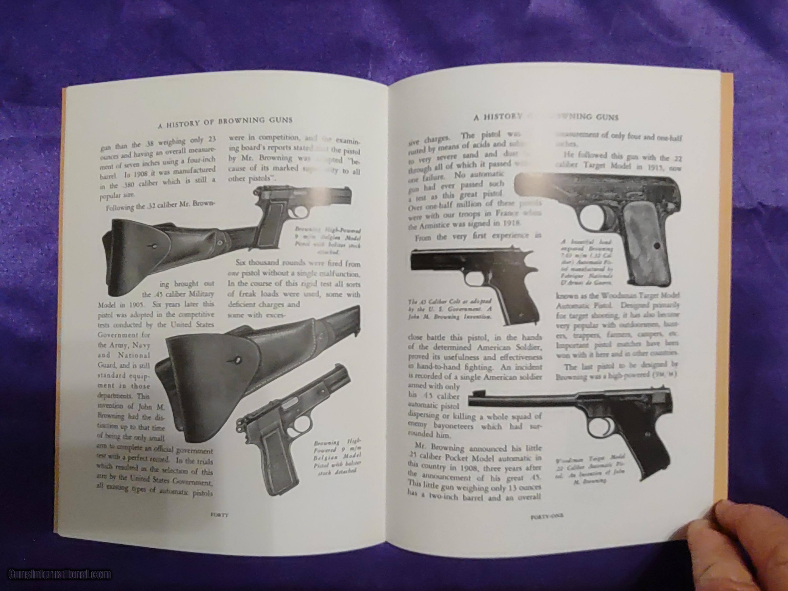 Description: A HISTORY OF BROWNING GUNS from 1831 written by and written for BROWNING ARMS, CO., St. Louis, MO. This book in leather-like soft cover is 9" X 6 3/4" with 60 pages of Browning family history, hundreds of family and gun pictures and history of all of the iconic Browning firearms. This book is in mint condition: no folded pages, no writing, no underlining, no hand prints, no excuses. The price is $40 with free mailing to your home or workplace. Would make a great gift. Call or text me at 318-780-4242 if you are interested. SOLD |
