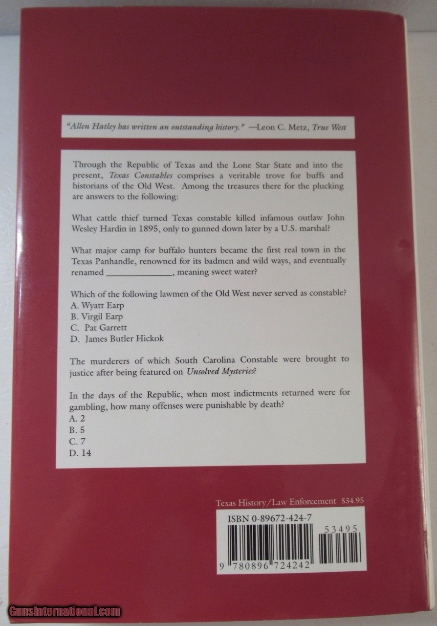 Description: 4 Books Total; a “Collector’s Guide to Colt .45 Service Pistols”, “The Lawmen”, “Texas Constables – A Frontier Heritage”, and “Texas”; Price Includes Insured Shipping; No Returns; Attention Texas Buyers: We Must Collect 6.75% Sales Tax; SOLD |