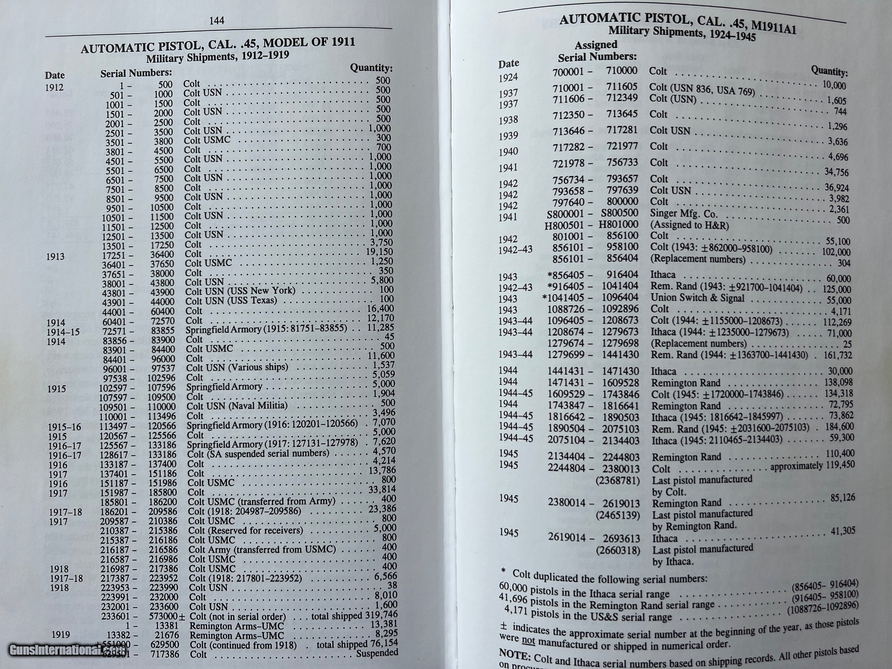 Description: SOLD! This is the final edition of Charles Clawson seminal work on Colt 1911 .45 military pistols - a collectors guide that distills the information presented in Clawson's "big book" to a easily presented text that is small enough to be taken to a gun show. Full of most important information on Colt 1911 military pistols, it covers everything from pre-WWI years to the end on WWII. Many pictures, graphs and tables, including a complete serial number list of all the 1911 and 1911A1 producers. Long out of print and a must for a 1911 collector! It is in great shape, with a couple of small scratches and dents here and there. Free shipping in CONUS Priced below market. SOLD |