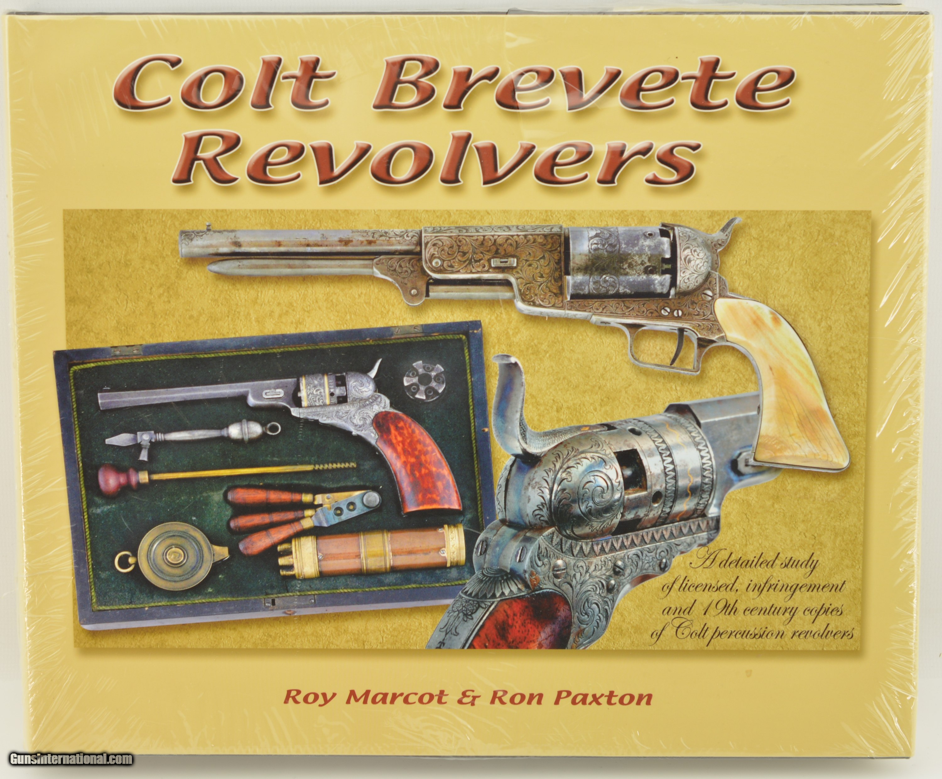 Description: This is a new copy, still in the original shrink wrap covering of Colt Brevete Revolvers by Roy Marcot & Roy Paxton "A Detailed Study of Licensed, Infringement and 19th Century Copies of Colt Percussion Revolvers" and is a hardcover book (12 x 10 in format) with hundreds of full-color photographs illustrating every aspect of the subject revolvers especially their markings. Published by Northwood Heritage Press. This book is sealed not allowing me to get exact page count or publishing date. It is published that the book is 372 pages and of 2011 first edition. SOLD |