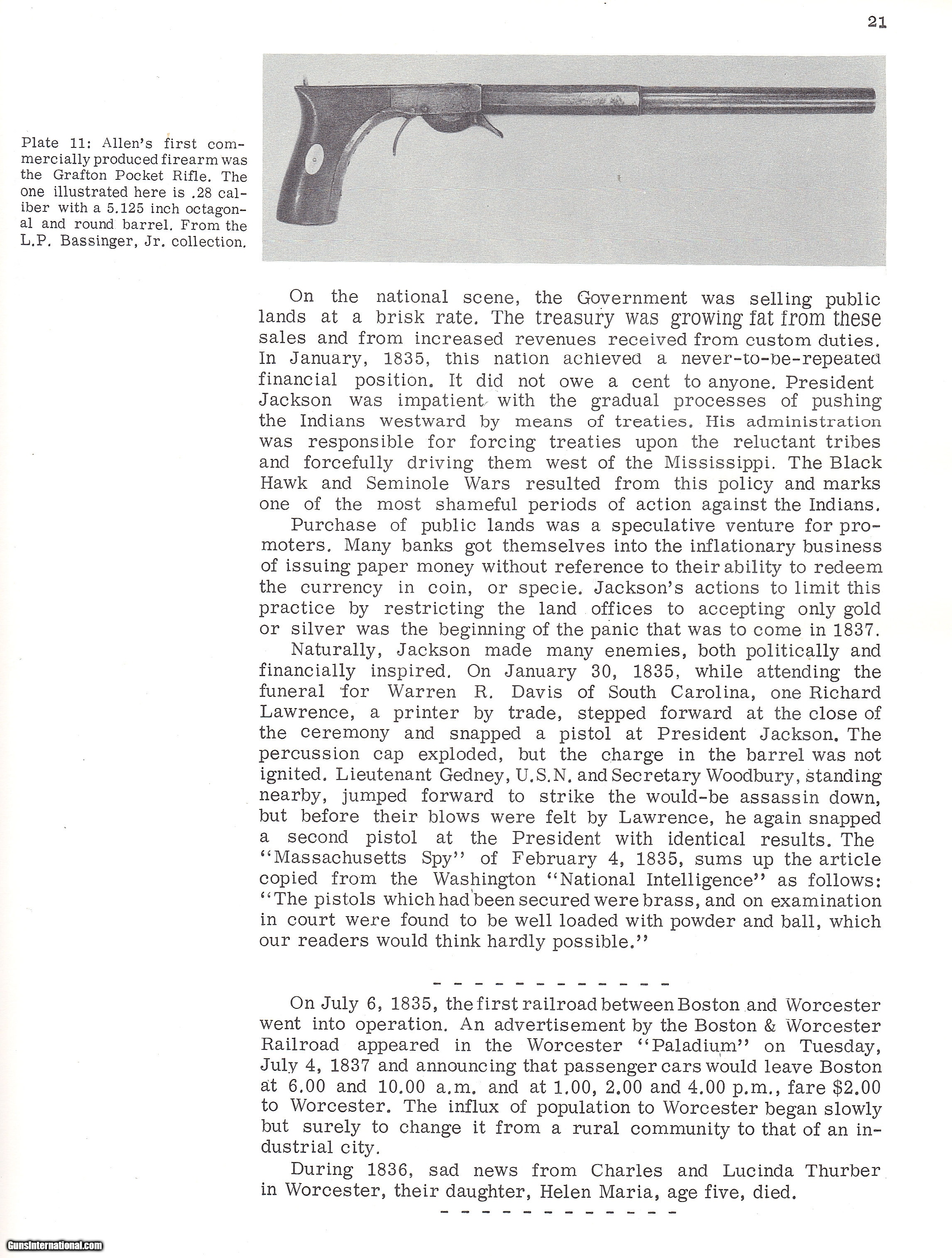 Description: Ethan Allen: Gunmaker by Harold L. Mouillesseaux: This book provides complete details on Allen, the Pepperbox revolver for which he is best known and the other arms which he and his companies manufactured. 184 pp., over 270 illustrations. SOLD Manufacturer: Allen Model: Pepperbox |
