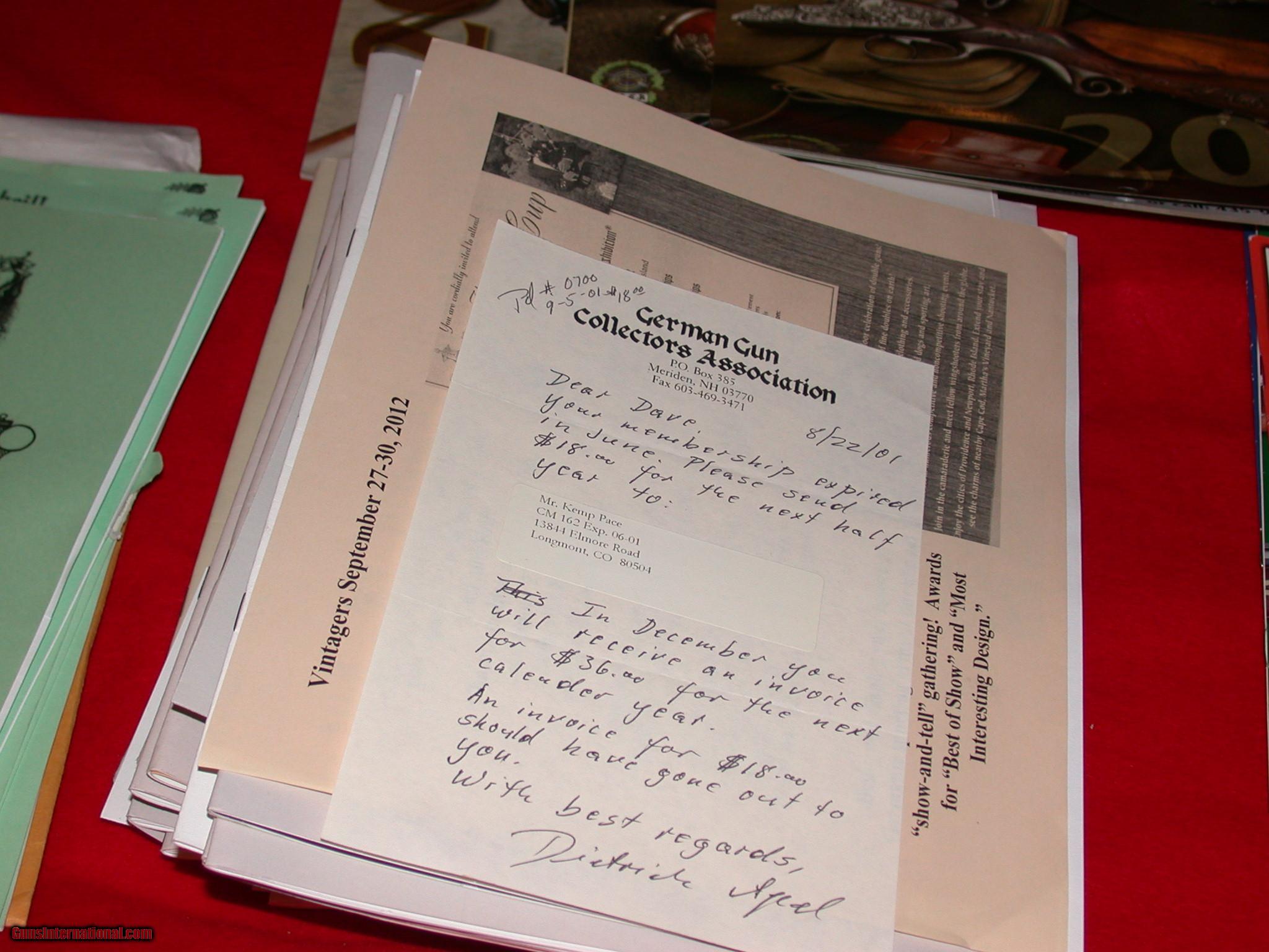 Description: Sale pending Make offer! A Mostly complete collection of all of the German Gun Collectors Association Issues dating back to 1998, maybe some earlier. Approximately 70+ pieces from over 18 years. These reprints (if available) are sold for $10.00 a peice thru the GGCA. Additionally four (4) CALANDARS. As well as updates and advetising from the Association All for $200.00 plus shipping SOLD |