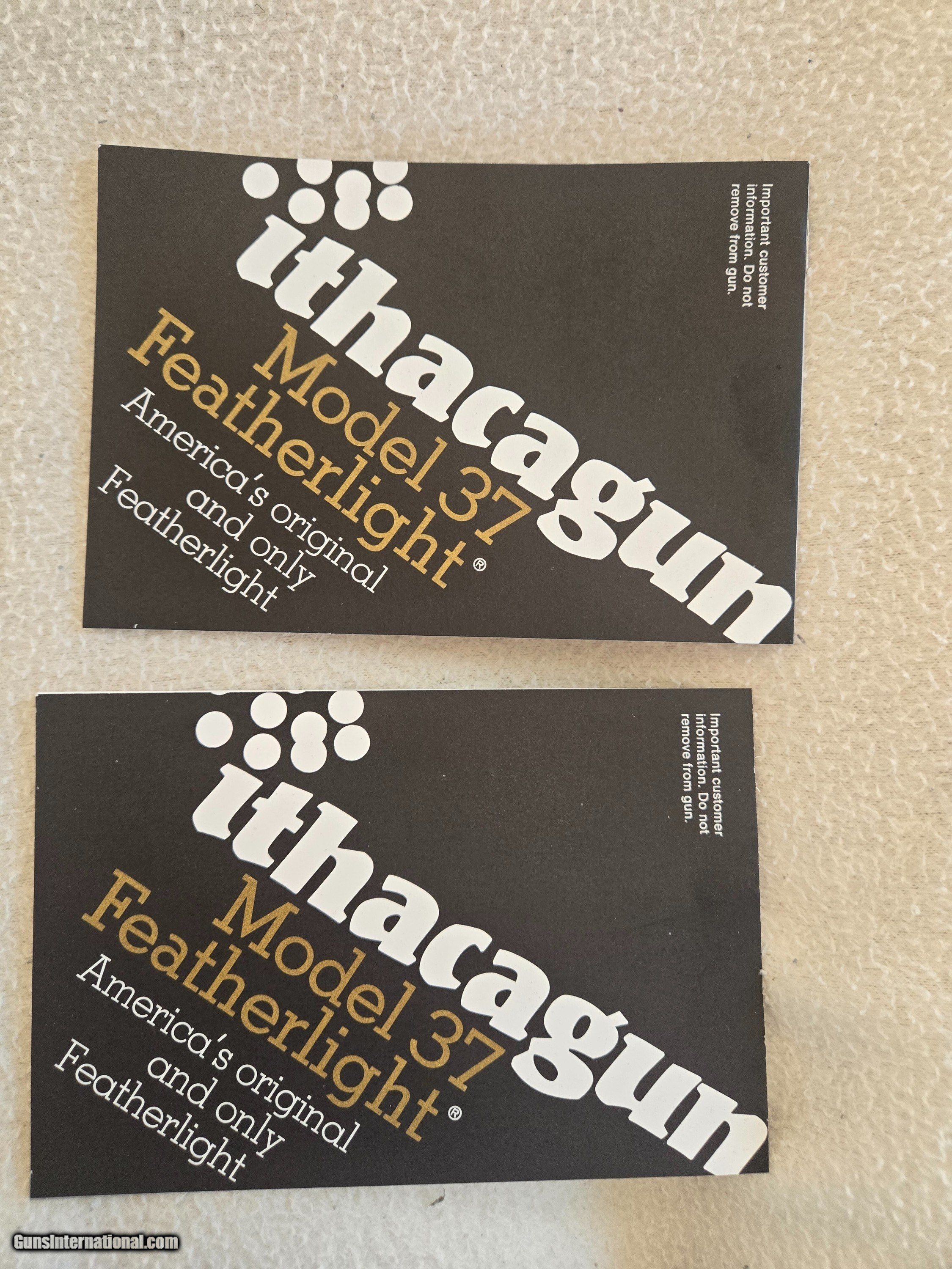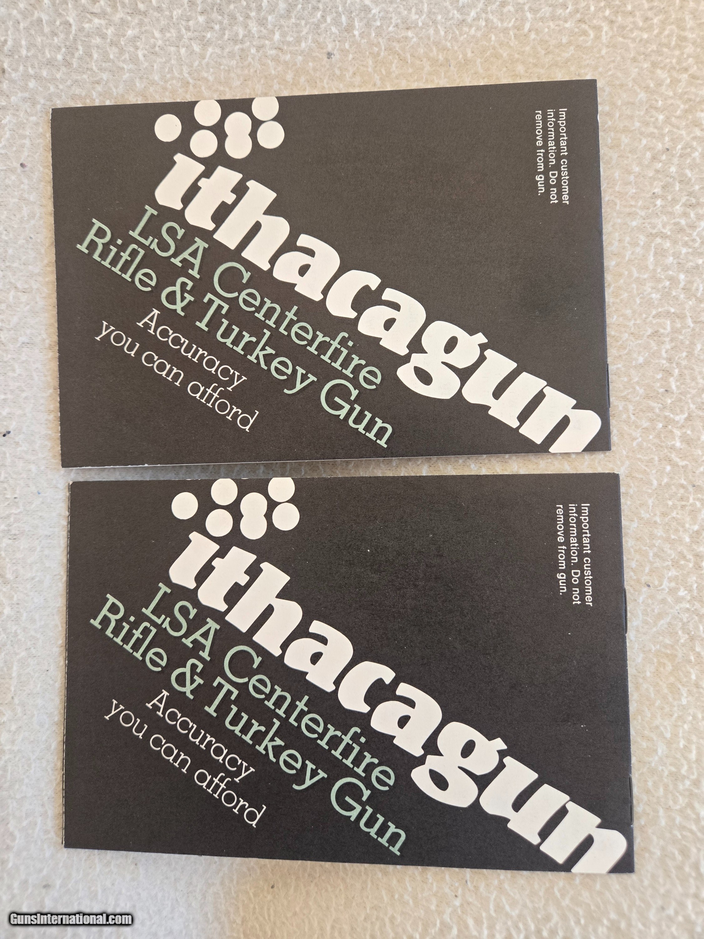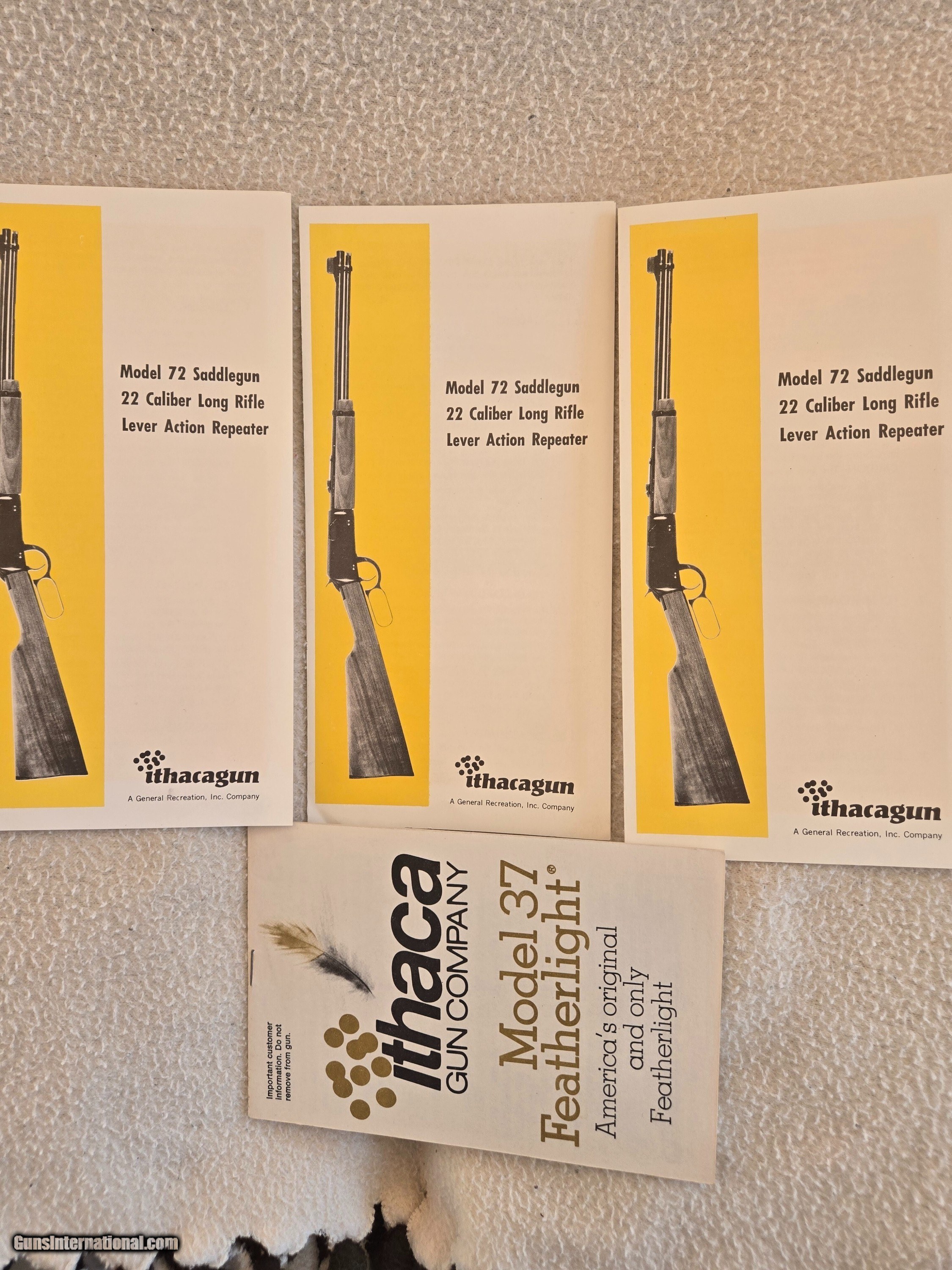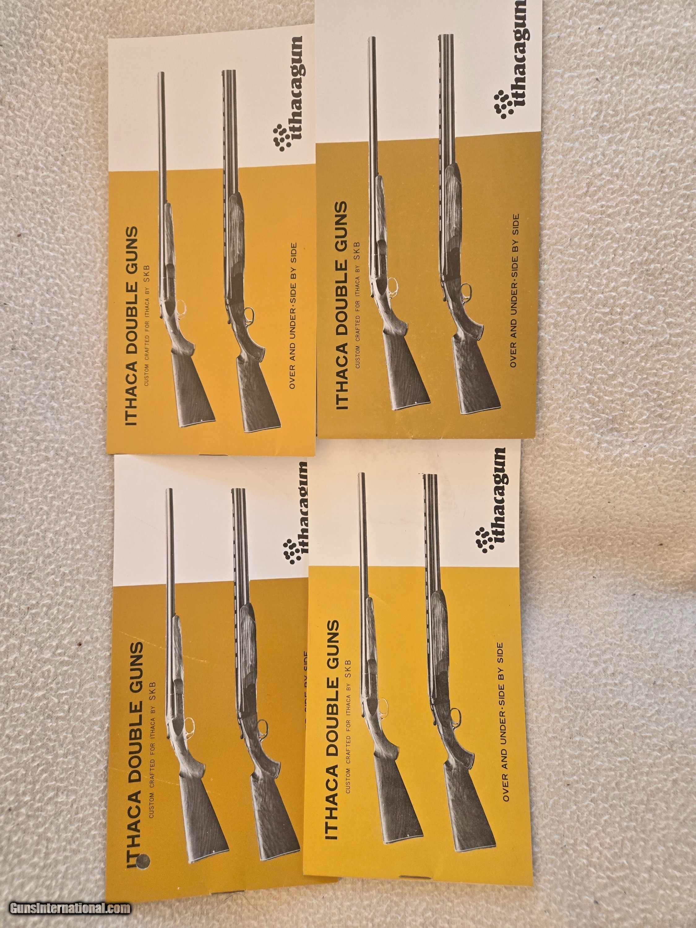 Description: Variety of Ithaca brochures and owners manuals. SKB shotguns,over and under,sidexside shotguns,Model 72 lever action 22,Model 37 Featherwight,LSA rifle and shotgun info. Complete field test on The Tikka combination over and under. Price: $65.00 Shipping: $10.00 Contact Seller |