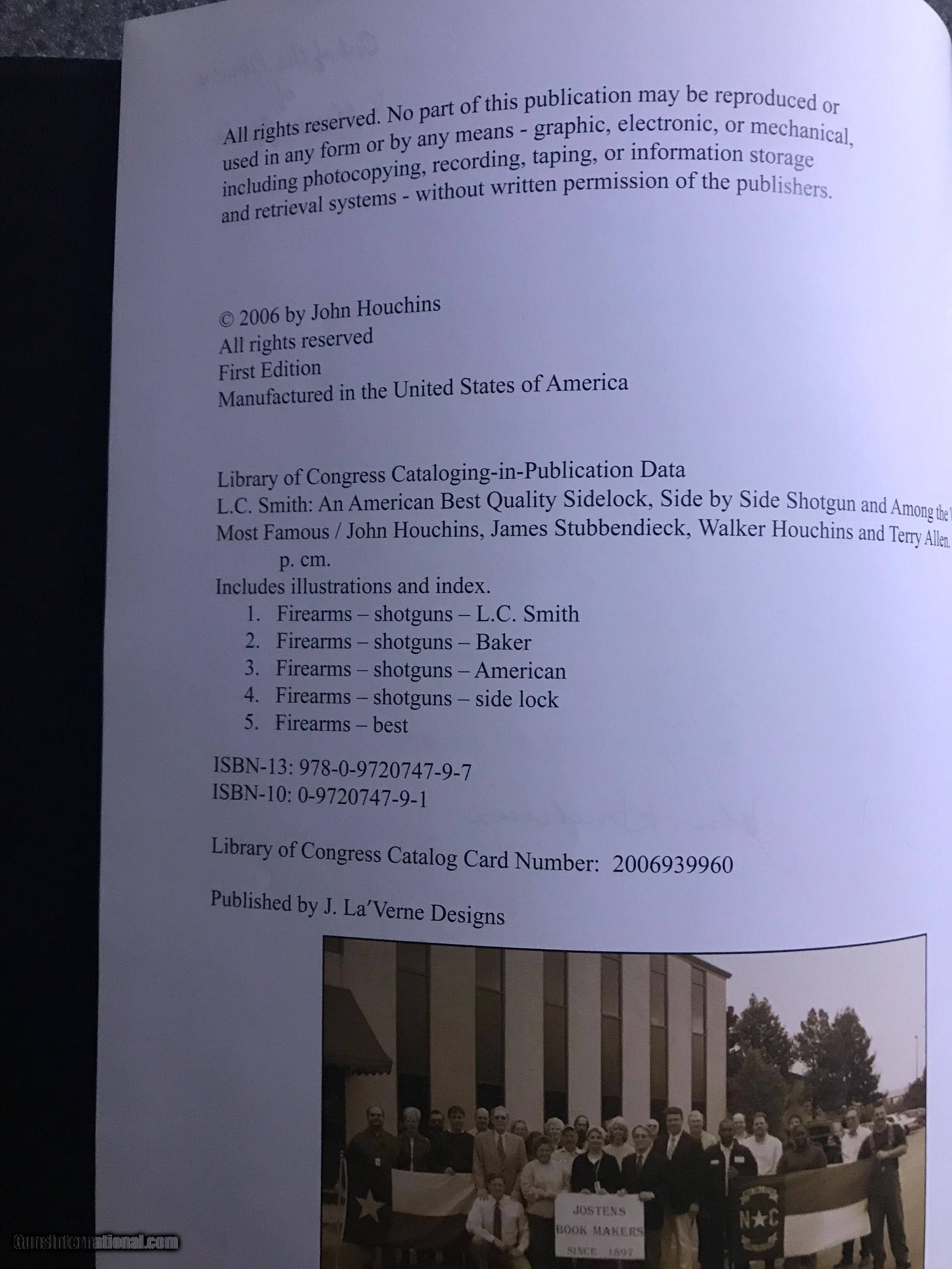 Description: L.C.Smith "The Legend Lives" by John Houchins, limited edition #76/300 leather bound First Edition signed by John Houchins, Josten's 2006, 686 ppgs., owner's name stamped on frontispiece, excellent condition, clean. This is the history of L.C.Smith from the Baker beginnings to their demise in the 1950's when owned by Marlin. This is not the trade edition currently for sale on the market. SOLD |