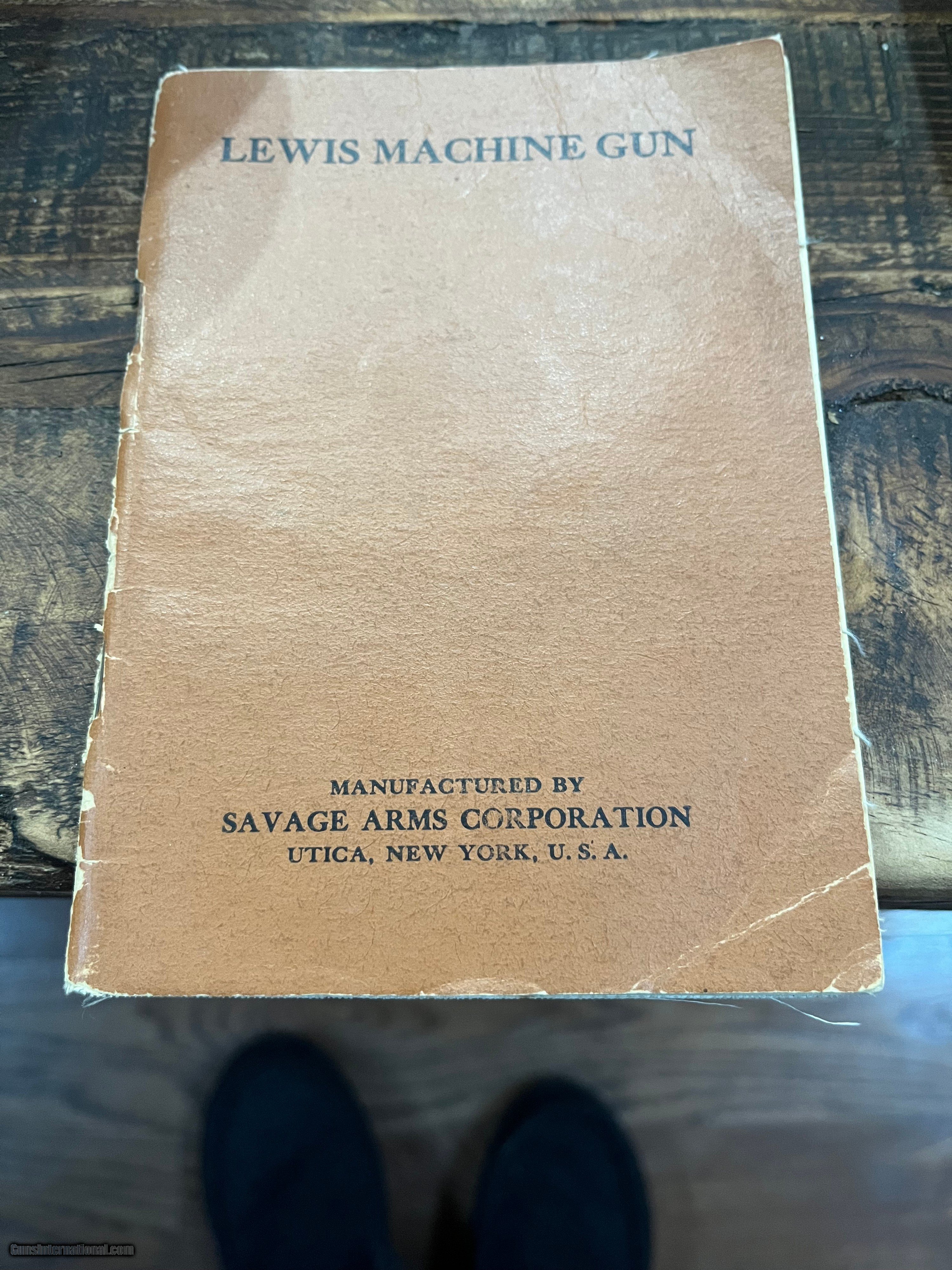 Description: WWI LEWIS MACHINE GUN MODEL 1917 30 CAL SAVAGE ARMS CO.HAND BOOK 63 PAGES< DETAILED FOLDOUT THIS MANUAL IS THE ORIGINAL HANDBOOK FOR THE US VERSION 1917 30 CAL LEWIS SOME CRACKING ON SPINE, OTHERWISE PERFECT CONDITION FOR OVER 100 YEARS OLD. SOLD |