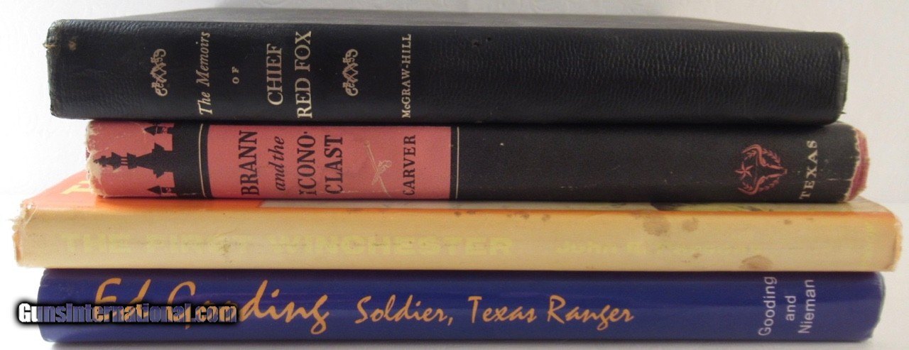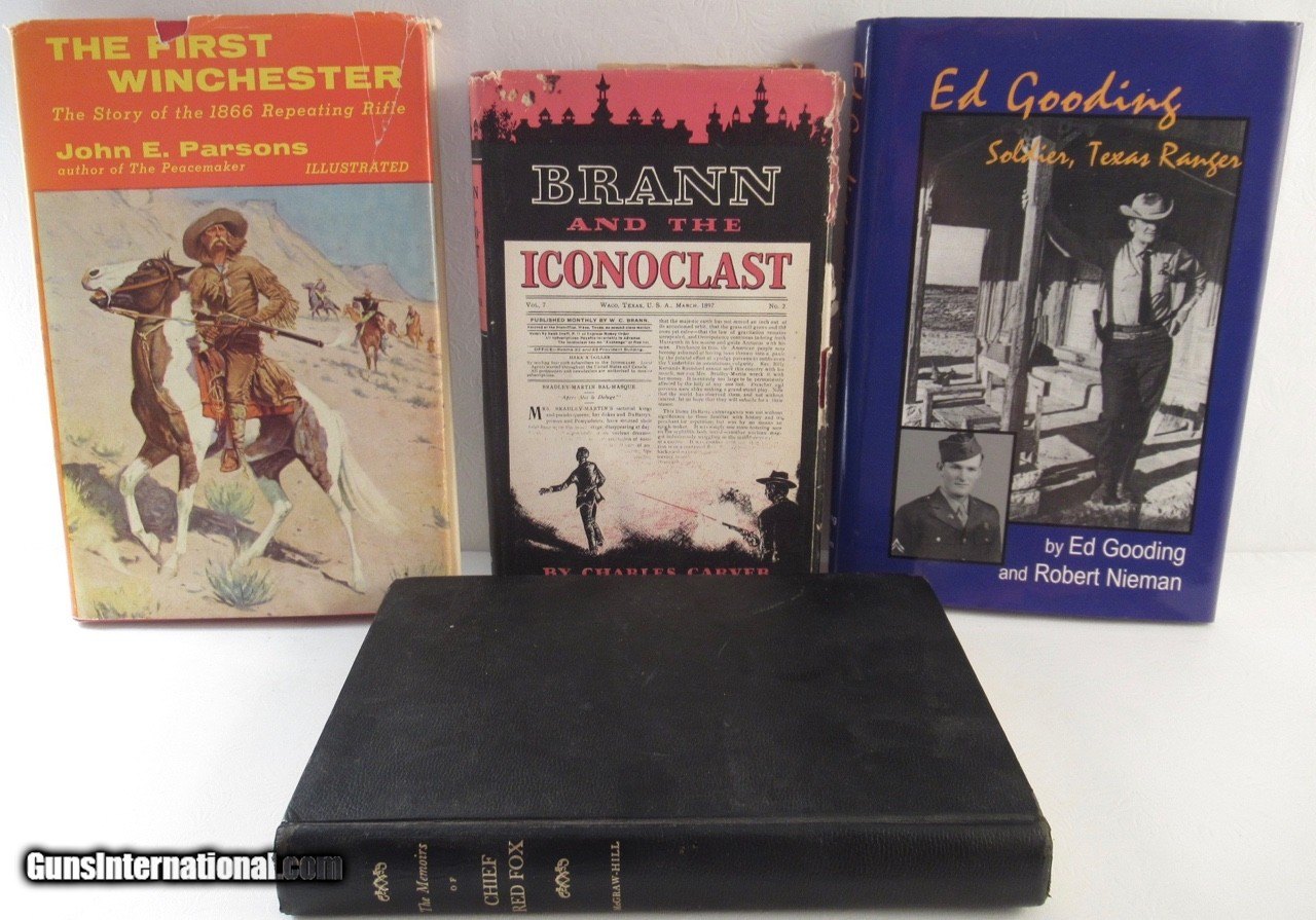 Description: 4 Books, each with their own take on the Old West and the People and Guns that made it; Books Include: “The Memoirs of Chief Red Fox”, “Brann and the Iconoclast”, “Ed Gooding – Solider, Texas Ranger”, and “The First Winchester”; Price Includes Insured Shipping; No Returns; Attention Texas Buyers: We Must Collect 6.75% Sales Tax; SOLD |